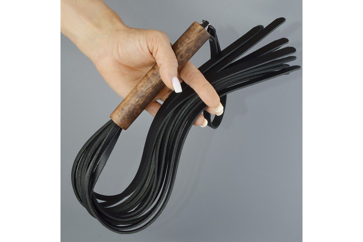 Черная кожаная плеть с деревянной рукоятью — 58 см