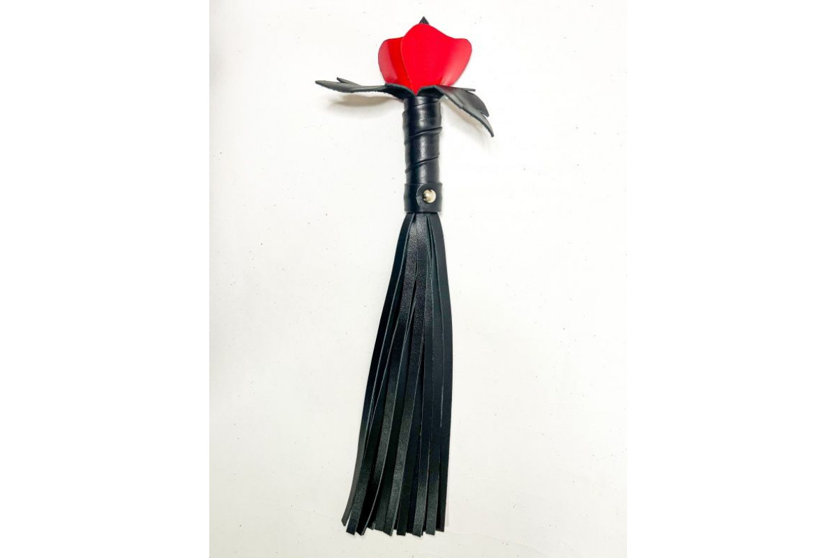 Черная кожаная плеть с красной лаковой розой в рукояти — 40 см