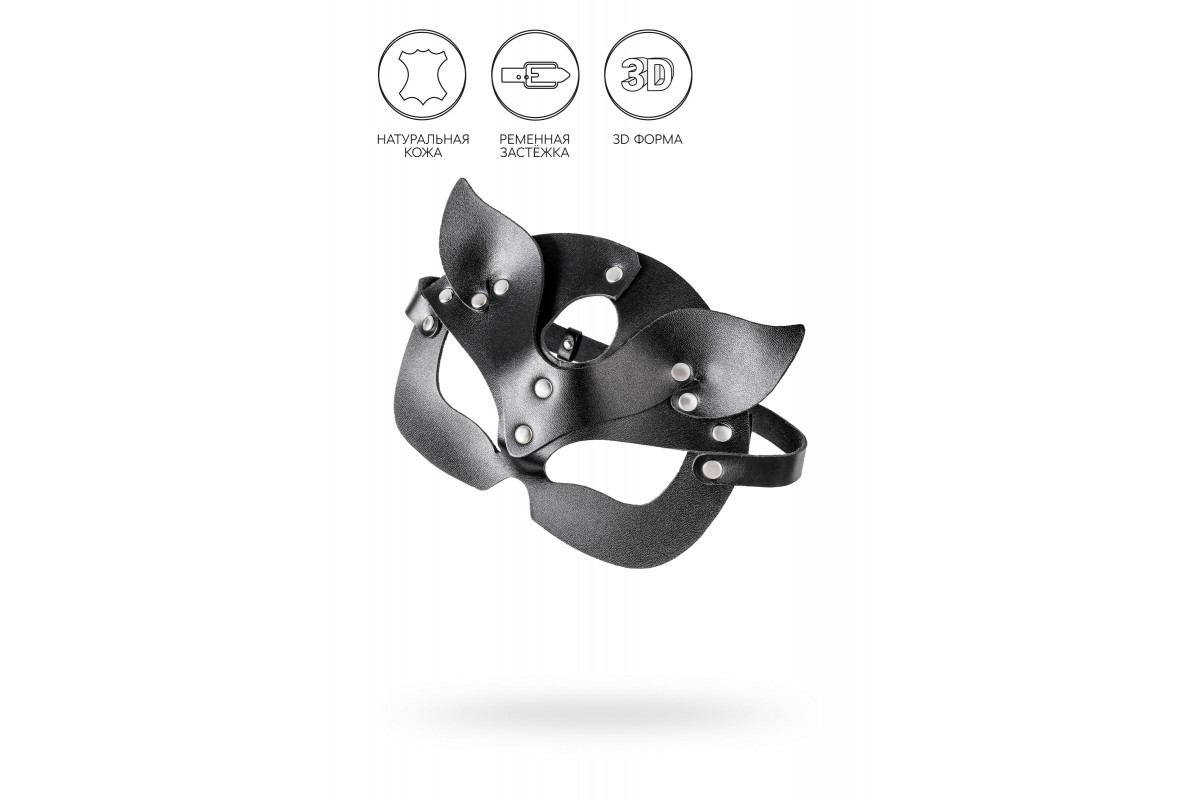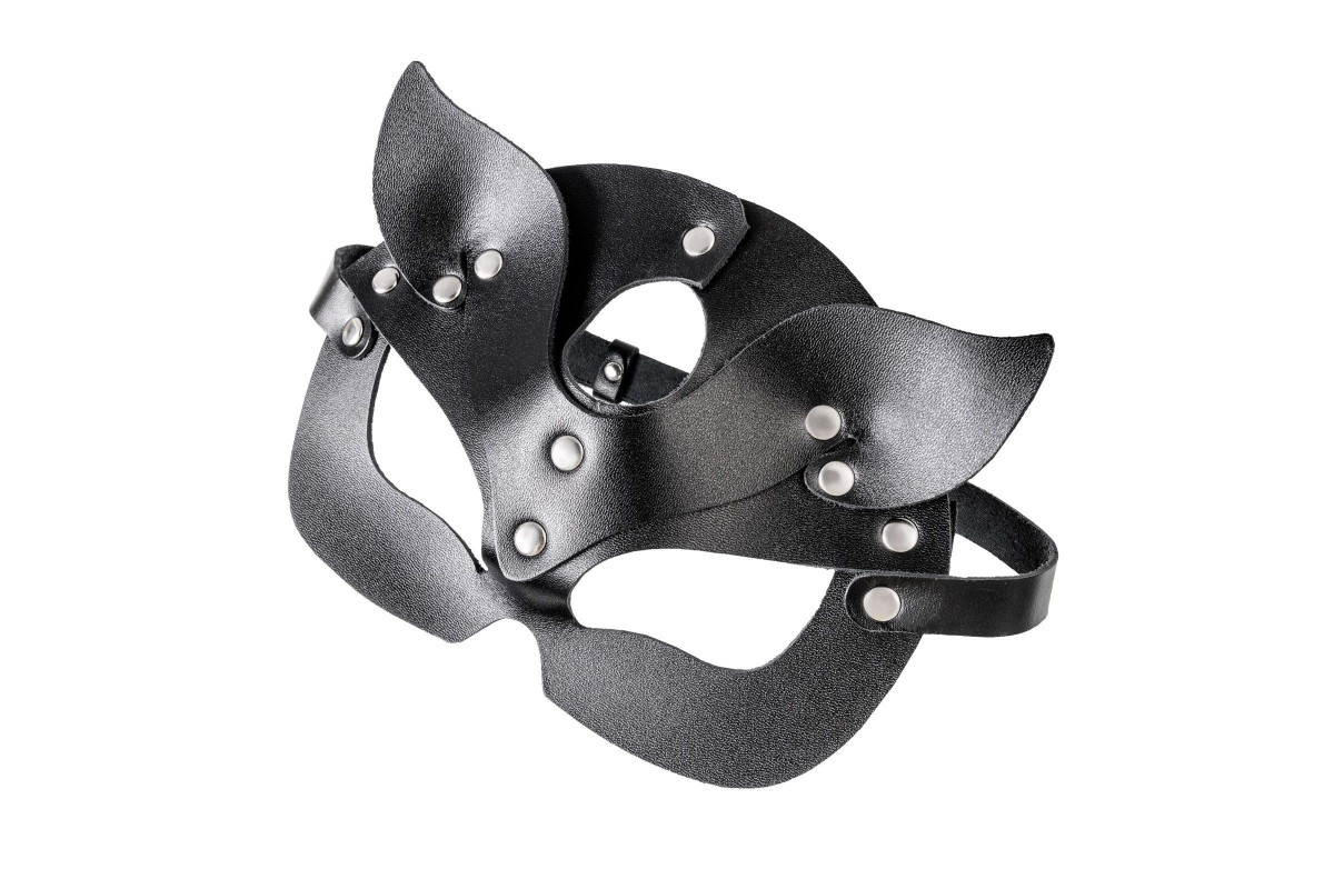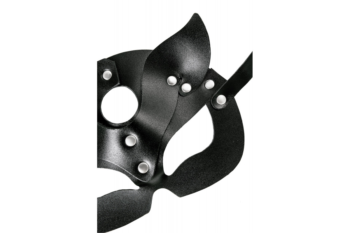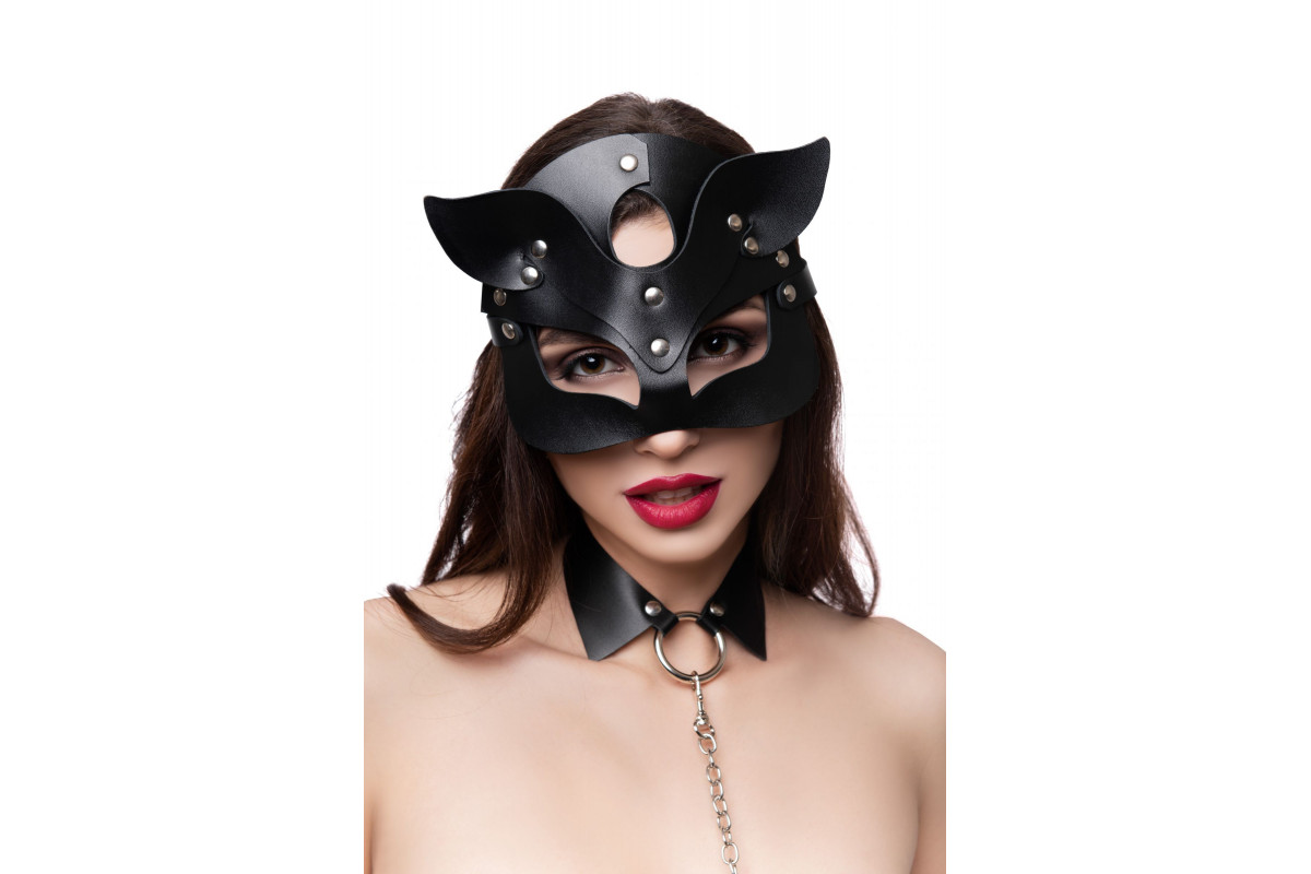 Черная кожаная рельефная маска кошки — стильный аксессуар для взрослых