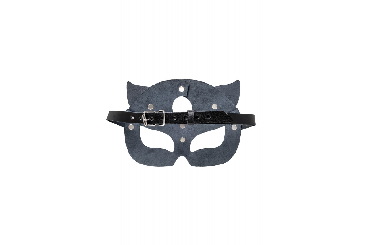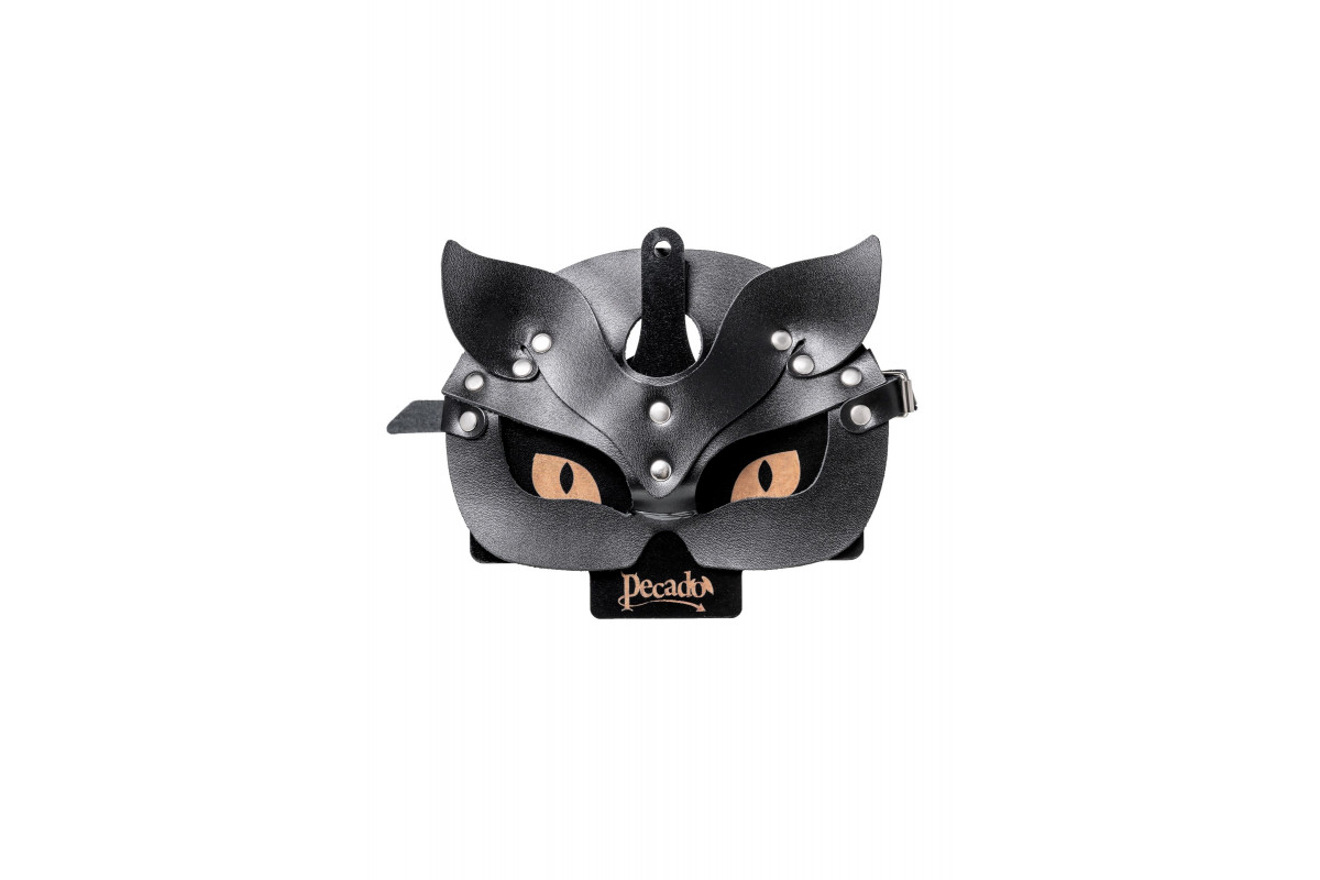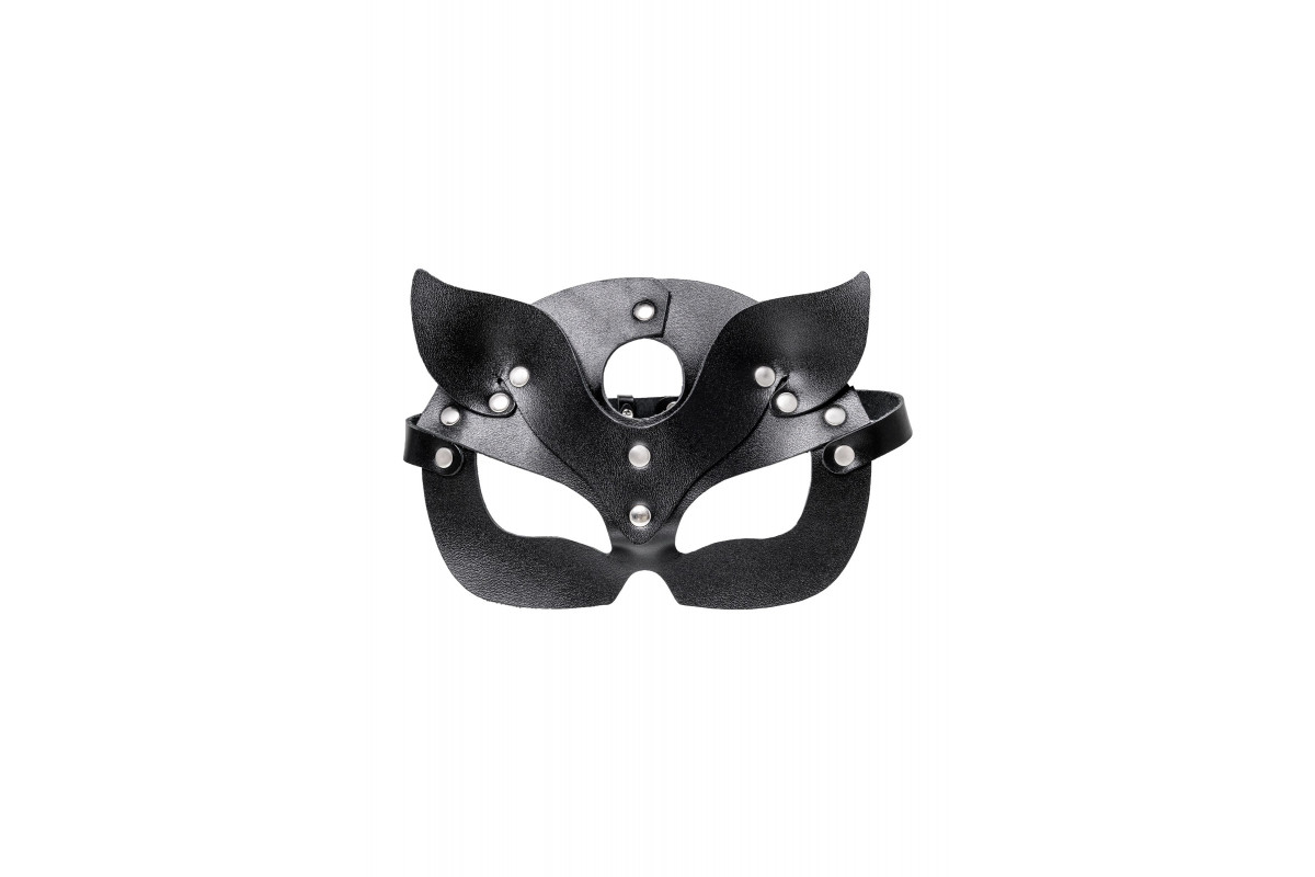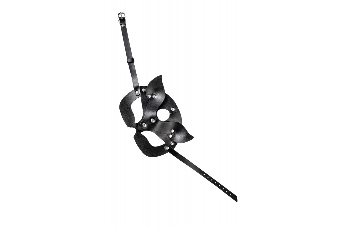 Черная кожаная рельефная маска кошки — стильный аксессуар для взрослых