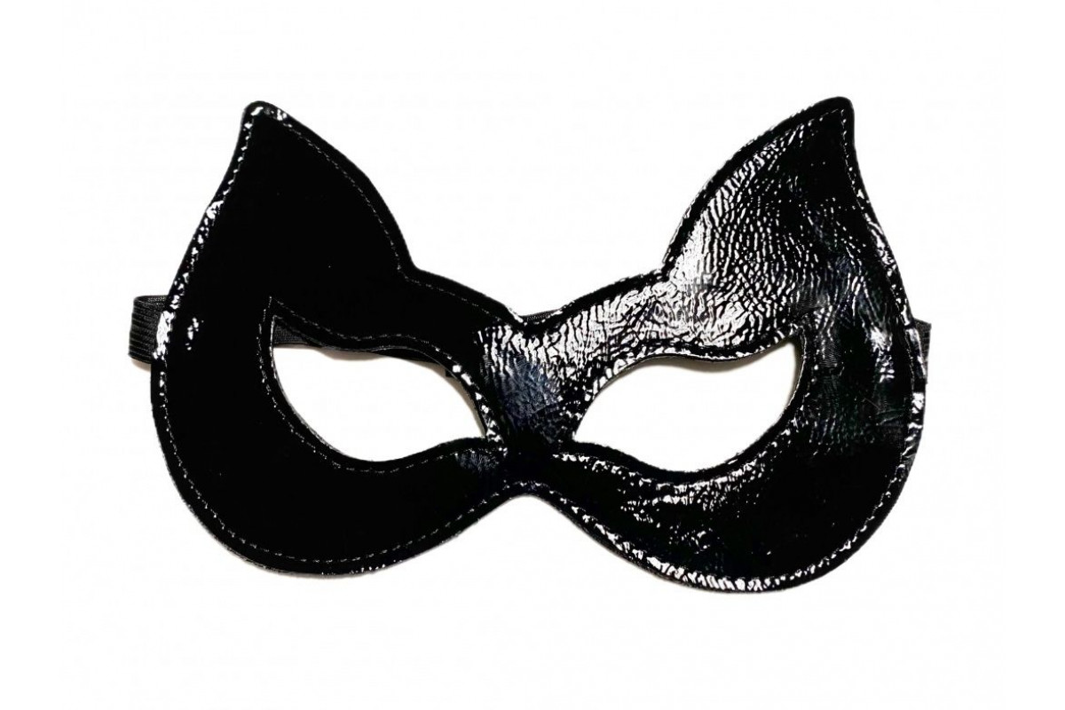 Черная лаковая маска с ушками из эко-кожи – стильный аксессуар для взрослых