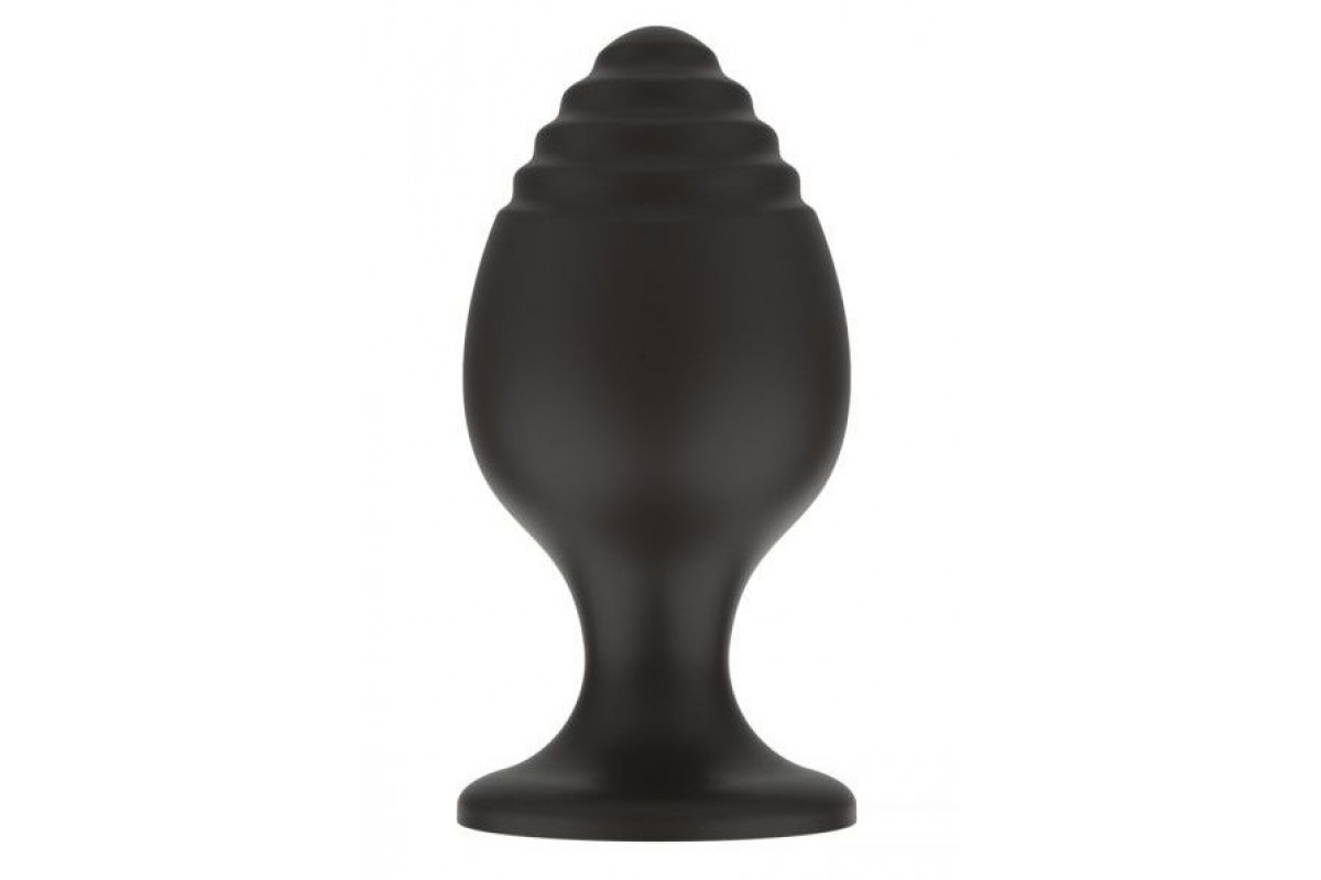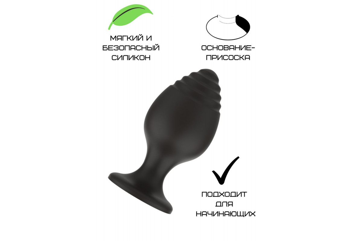 Черная малая силиконовая анальная пробка с ребрышками на кончике