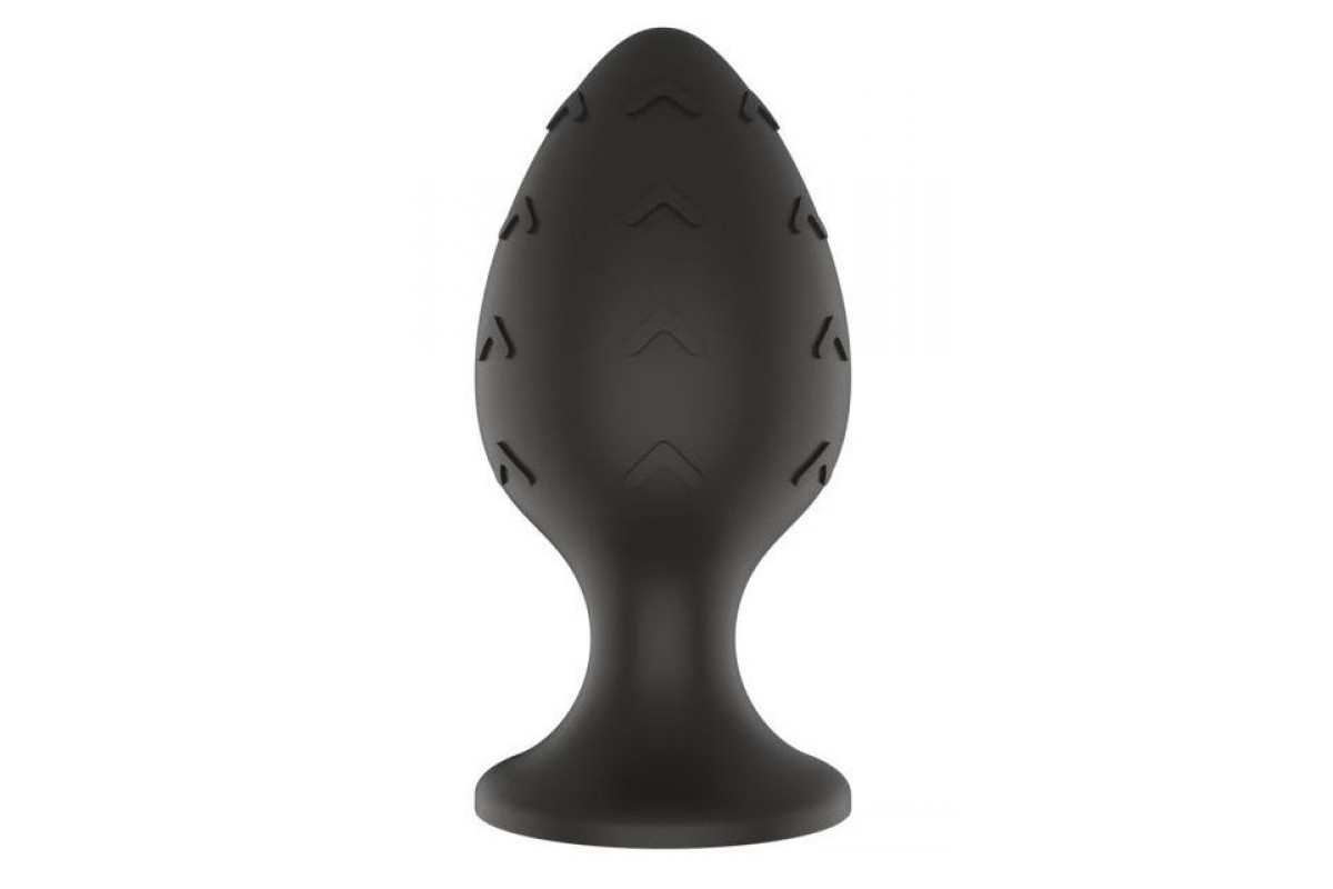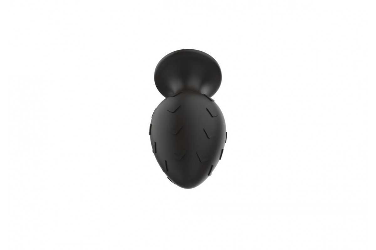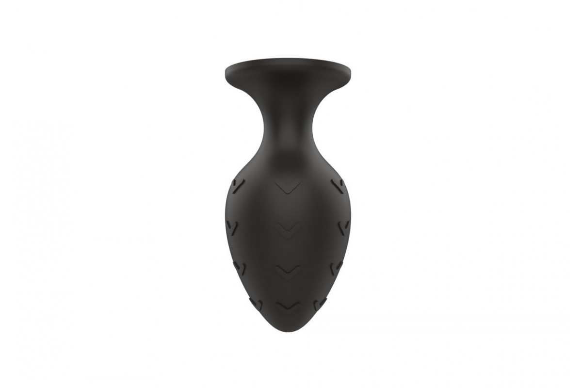 Черная малая силиконовая анальная пробка с рельефом в виде галочек