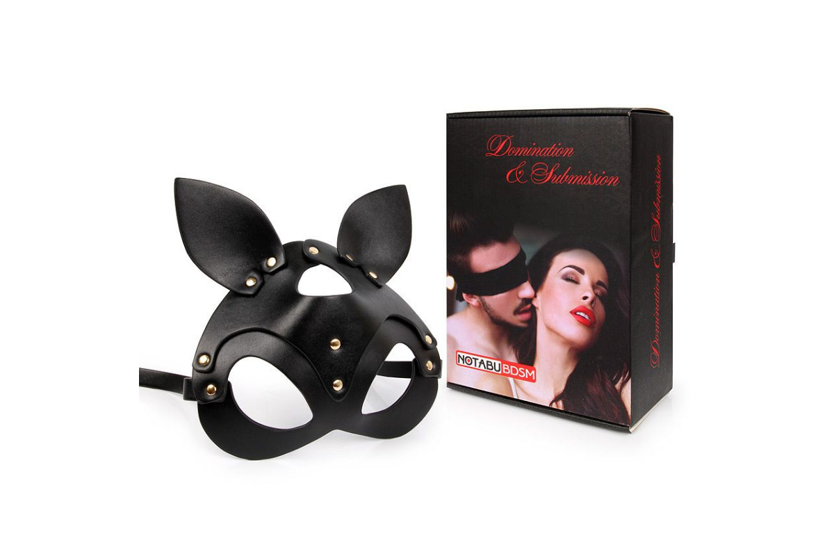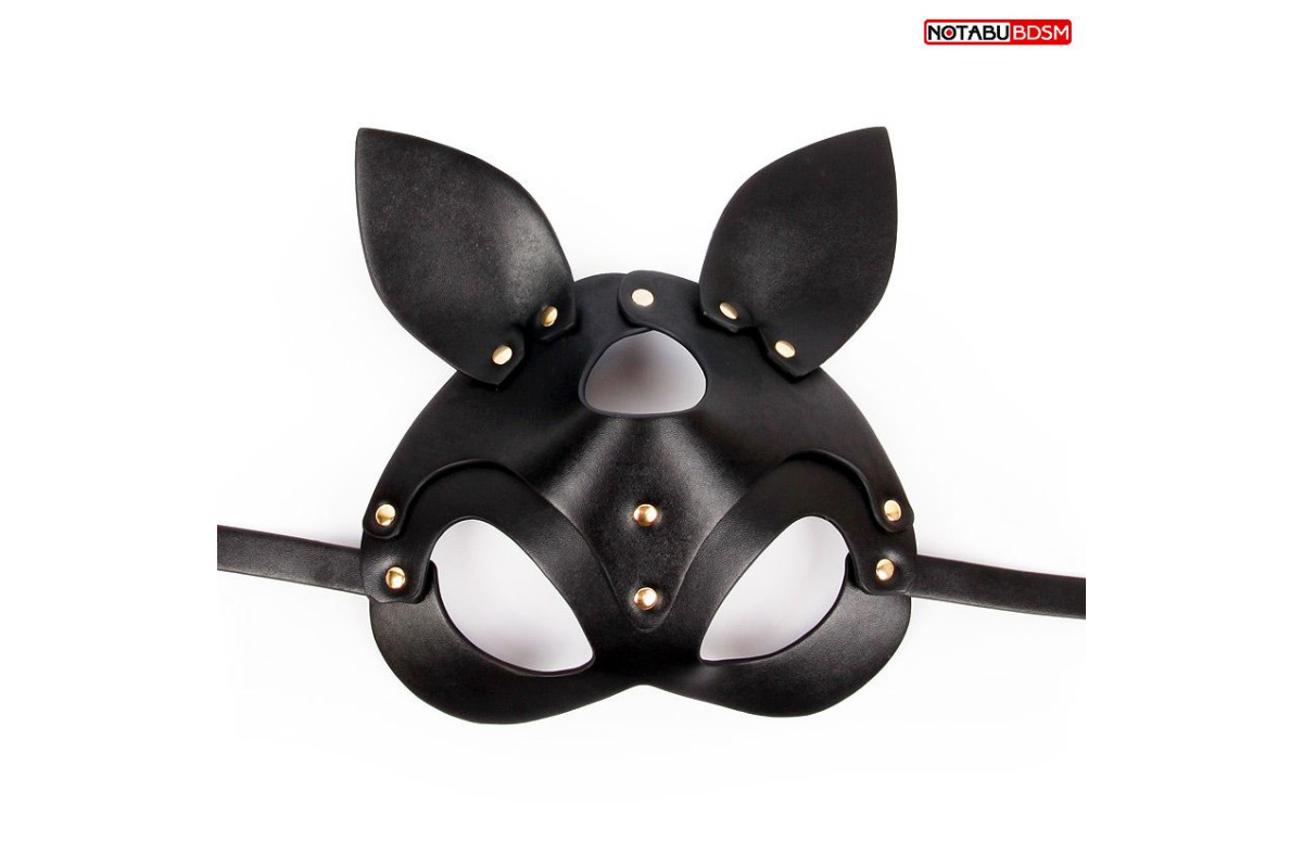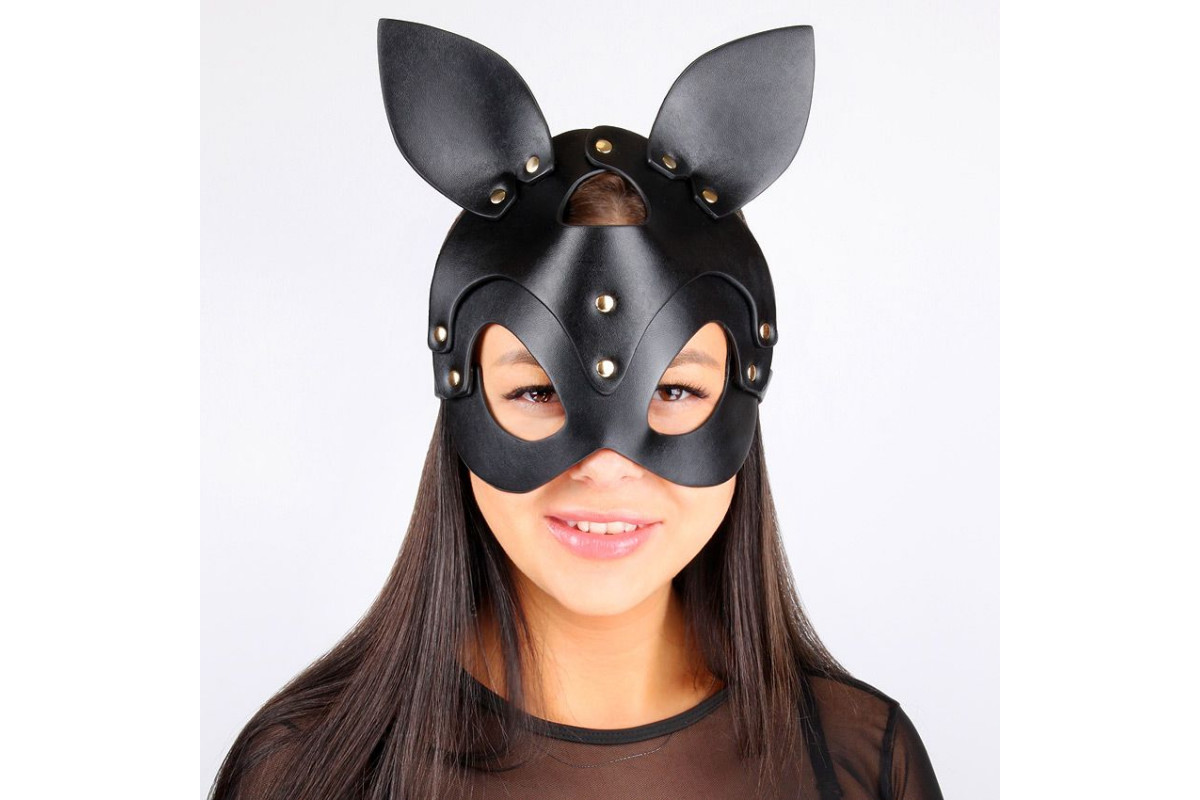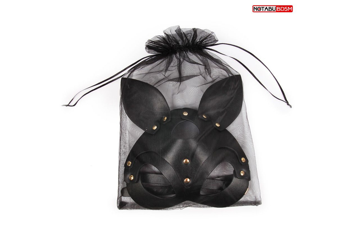 Черная маска с ушками и заклепками — стильный аксессуар для взрослых