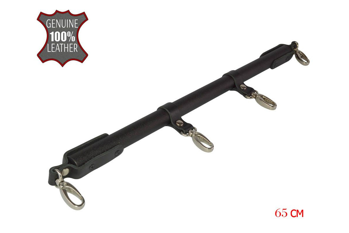 Черная металлическая распорка с кожаными ремешками и карабинами - 65 см.