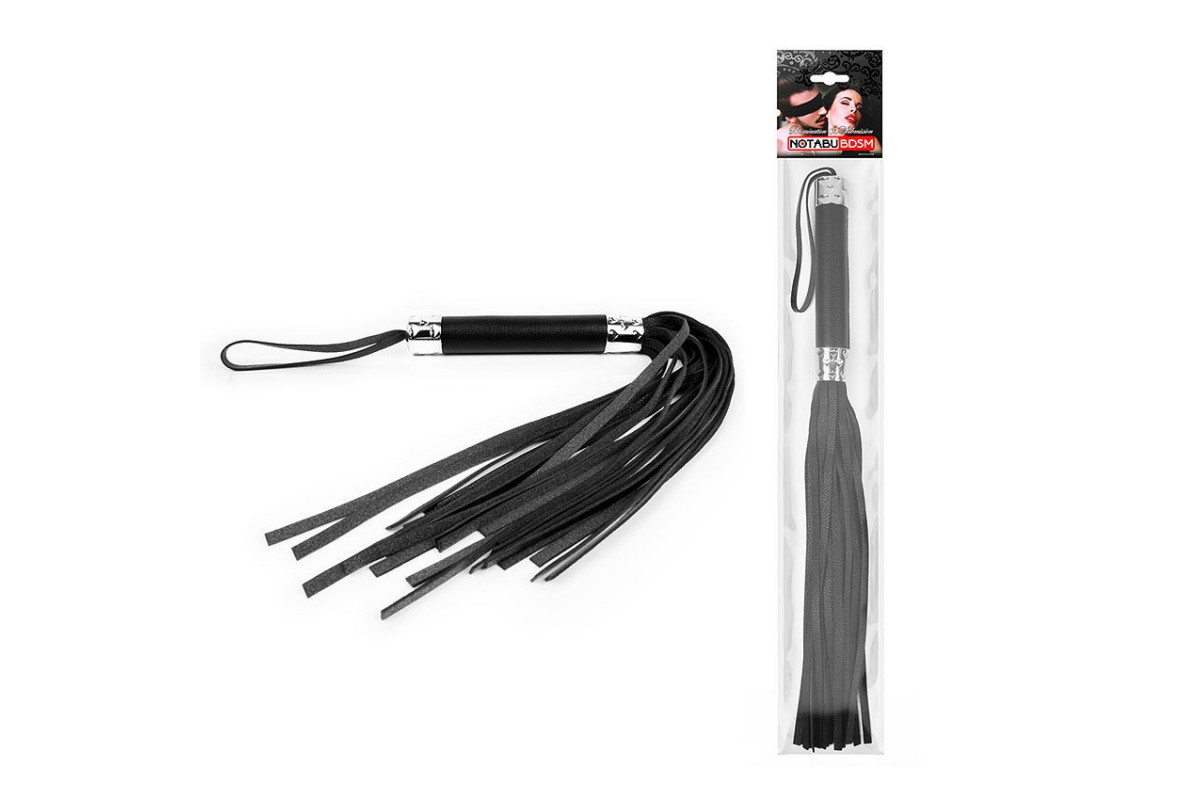 Черная многохвостая плеть с круглой ручкой — 44 см