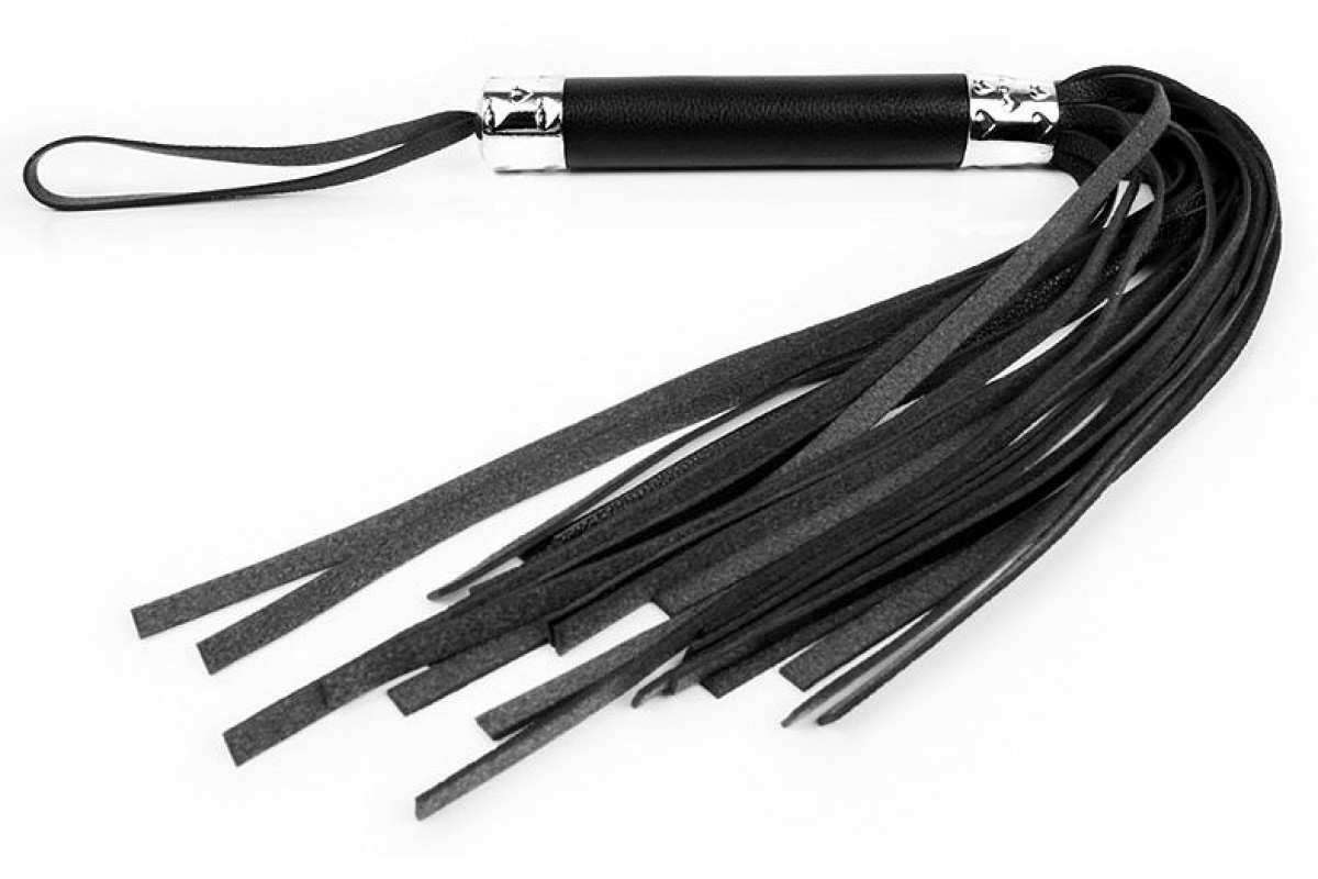 Черная многохвостая плеть с круглой ручкой - 44 см.