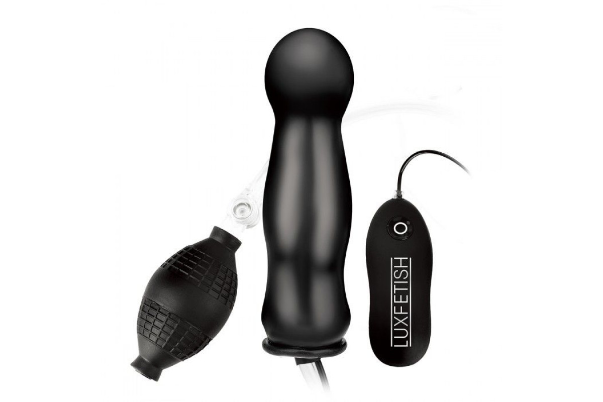Черная надувная анальная пробка с вибрацией - 10 см.