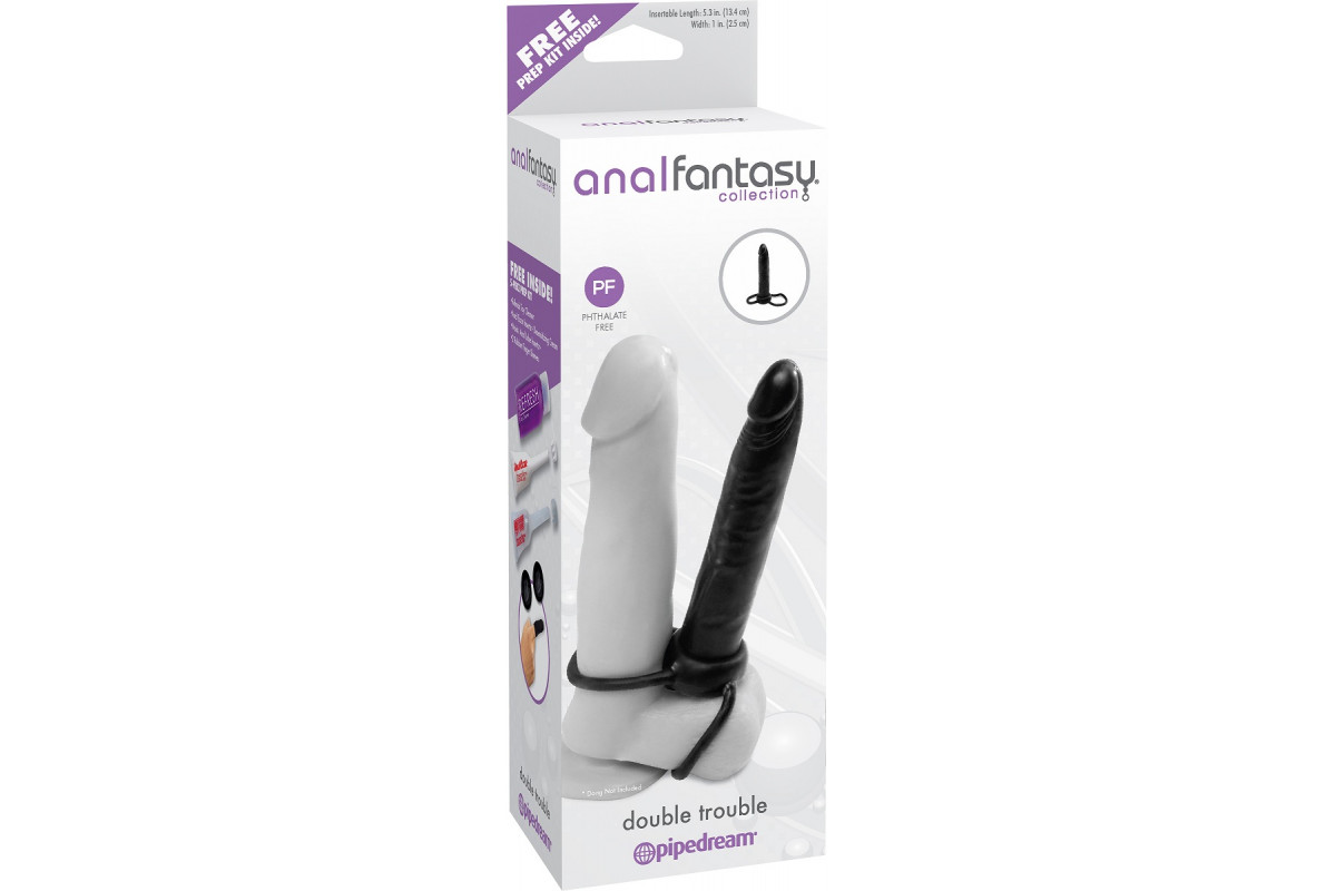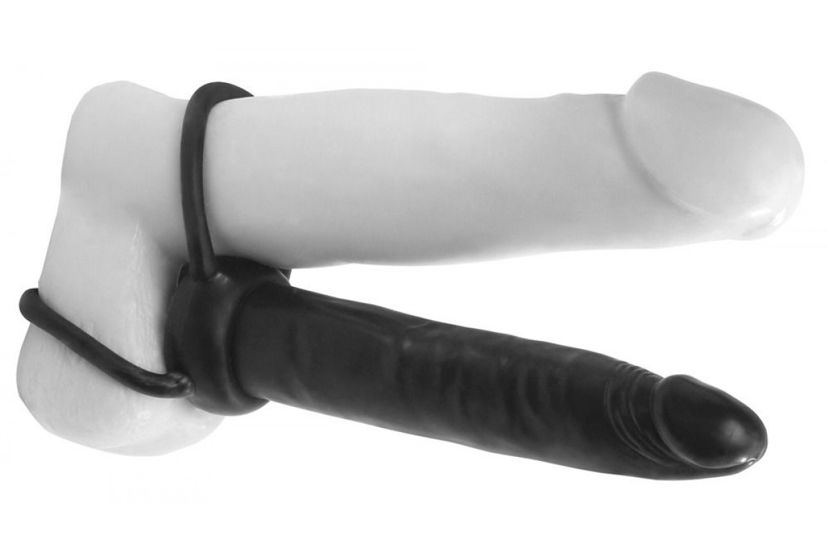 Черная насадка на пенис для двойного проникновения Double Trouble – 15,3 см