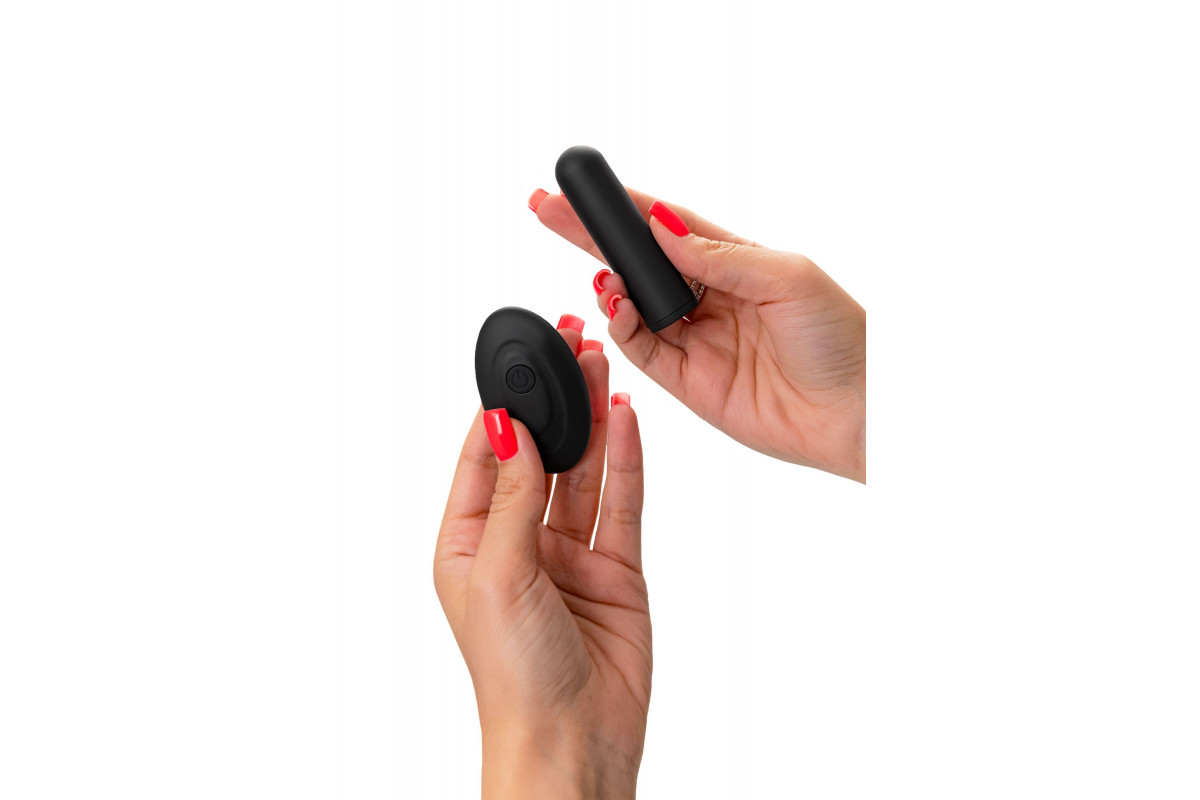 Черная перезаряжаемая вибропуля с пультом ДУ RealStick CALIBER — интимное удовольствие нового уровня