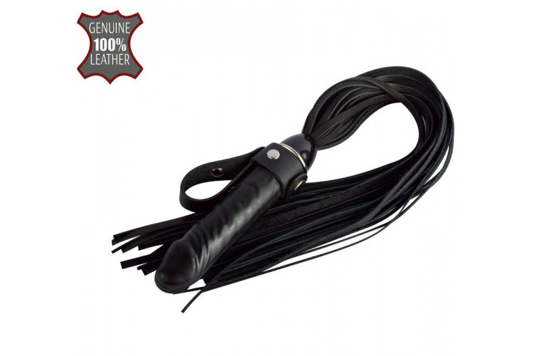 Черная плеть Ковбой с ручкой-фаллосом - 55 см.