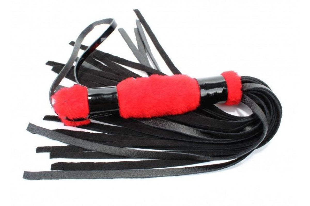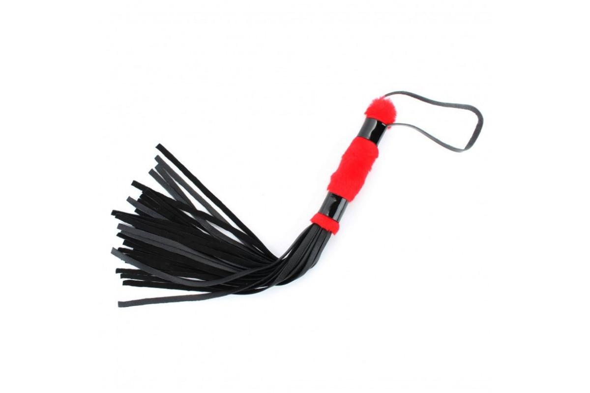 Черная плеть с красной меховой рукоятью – добавьте страсти в ваши интимные игры