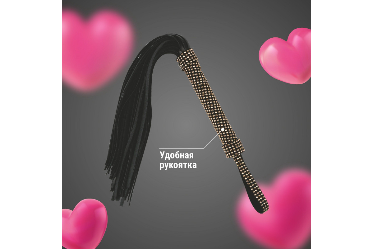 - Элегантный дизайн: классический черный цвет и стильные заклепки делают плеть не только функциональной, но и привлекательной.