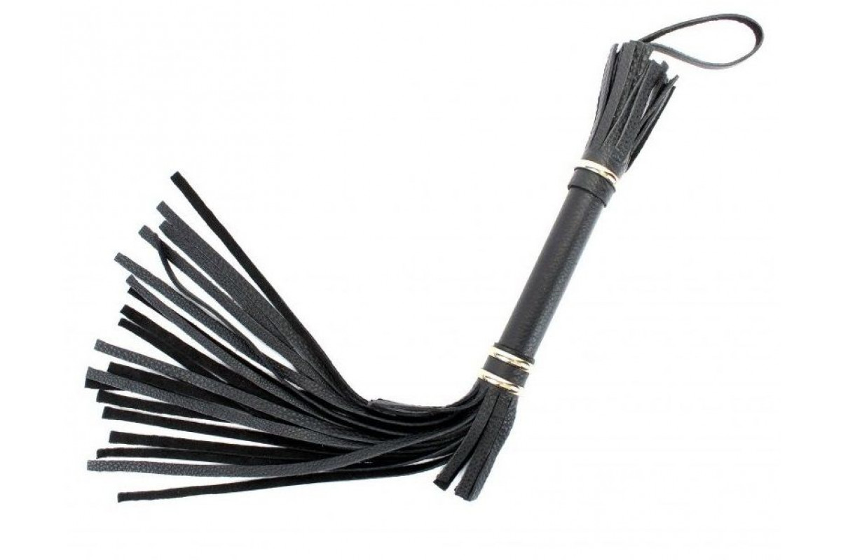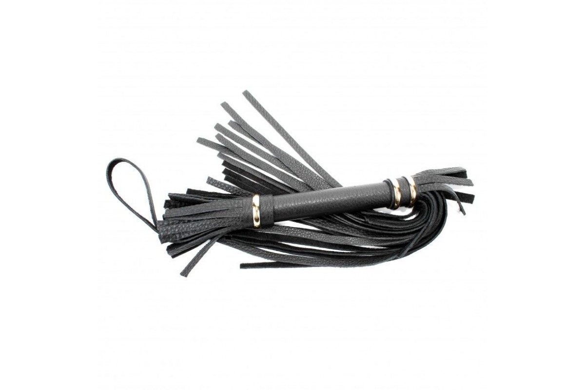 Погрузитесь в мир новых ощущений с нашей стильной и качественной чёрной кожаной плеткой, украшенной изысканной золотистой отделкой. Идеальный аксессуар для тех, кто ценит сочетание роскоши и функциональности в интимных развлечениях.