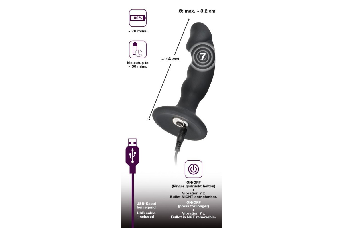 Анальная реалистичная вибровтулка выполнена из мягкого и скользкого материала. Имеет изогнутую головку и выраженный рельеф, снабжена мощным мотором, заряжается с помощью USB-провода (в комплекте). Рабочая длина - 12,5 см.