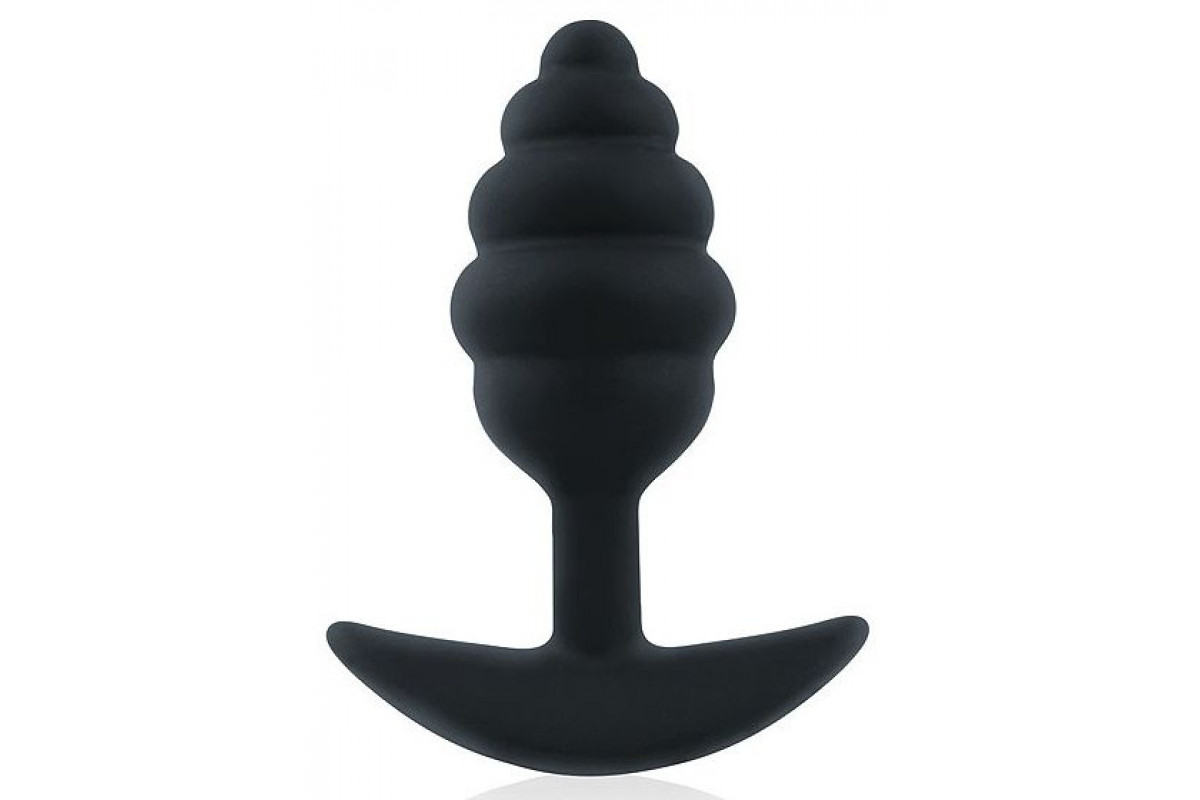 Черная ребристая анальная втулка с ограничителем - 9 см.
