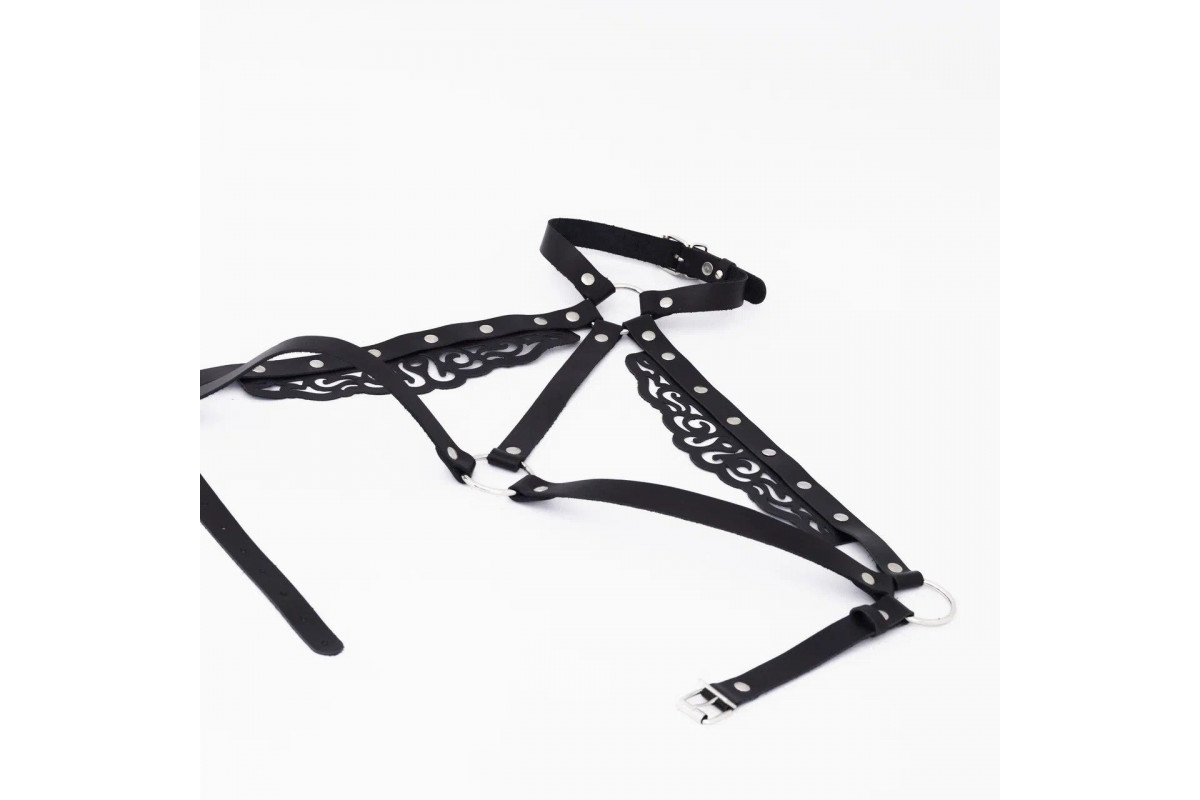 Черная резная портупея с клепками