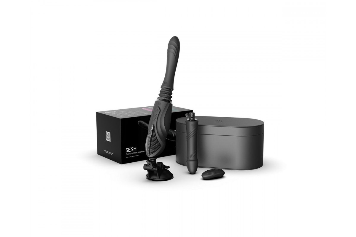 Черная секс-машина с функцией нагрева, насадками и присоской Sesh