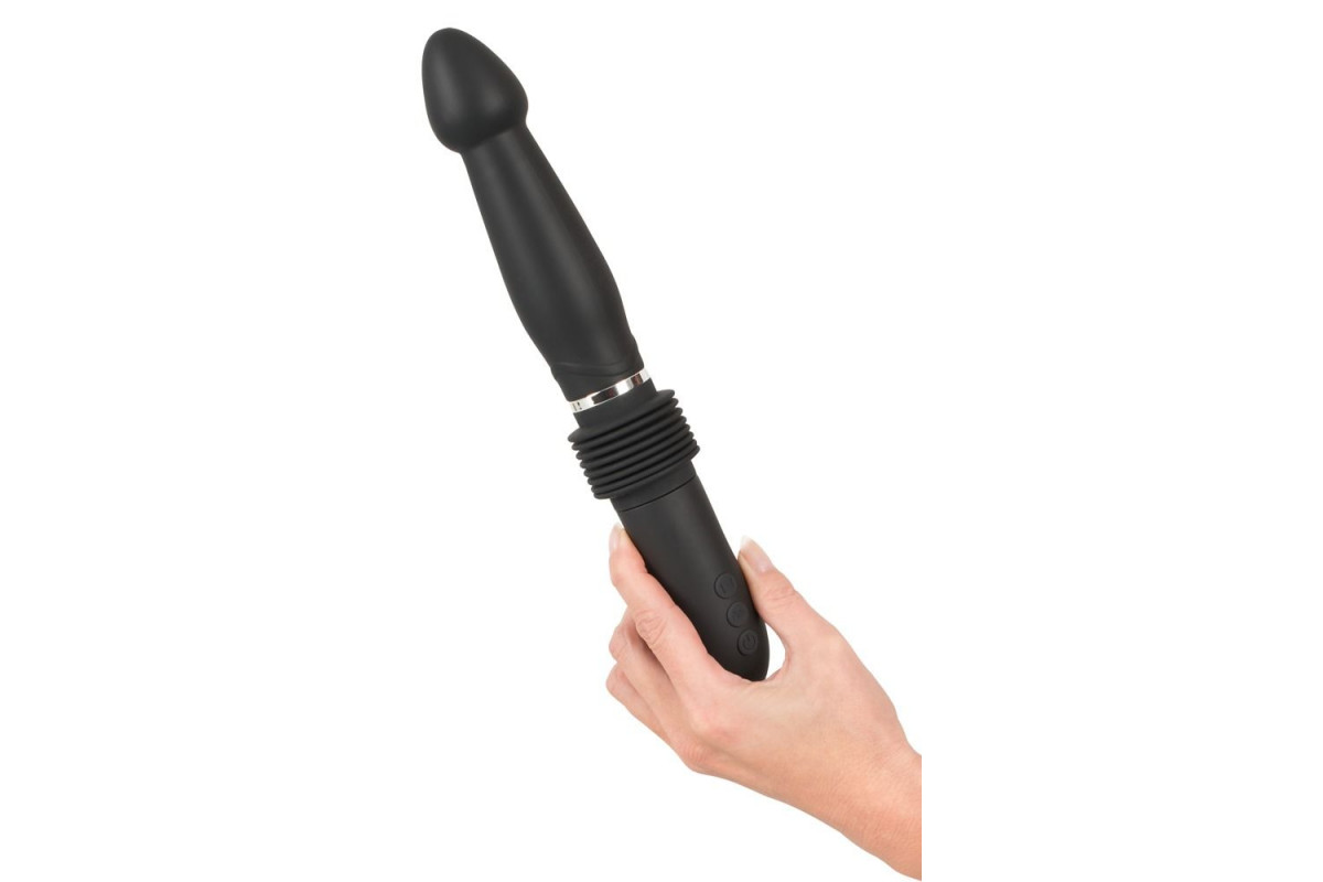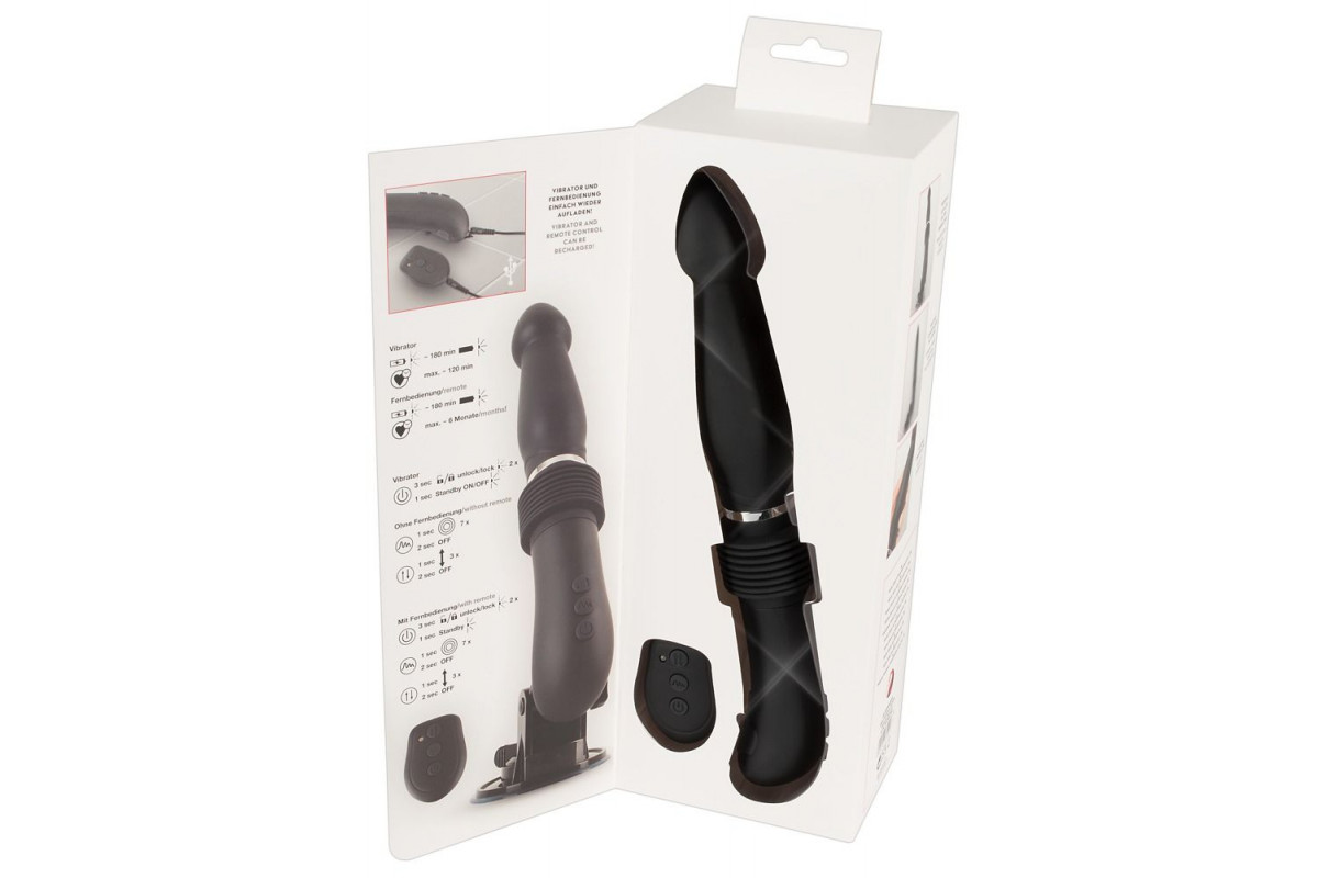 Этот вибратор выделяется своими глубокими толчками на 3 регулируемых скоростях. Это не только скорость и глубина толчков, а так же 7 режимов вибрации (которые можно контролировать отдельно). Мягкая поверхность и форма фоллоимитатора помогают этой машине скользить достаточно глубоко и стимулировать все зоны внутри. Регулируемая и съемная присоска вместе с пультом дистанционного управления делает возможным использование без рук. Дистанционное управление также означает, что партнер может взять управление на себя. Прилагаемый USB-кабель можно использовать для зарядки пульта дистанционного управления и вибратора. Шаг поступательных движений - 6 см.