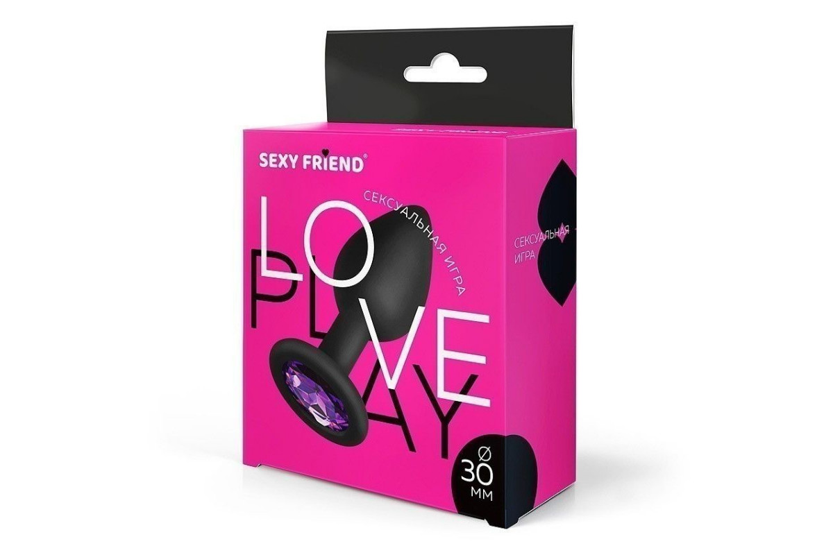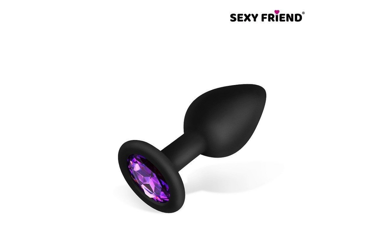 Черная силиконовая анальная втулка с фиолетовым кристаллом - 7,3 см.