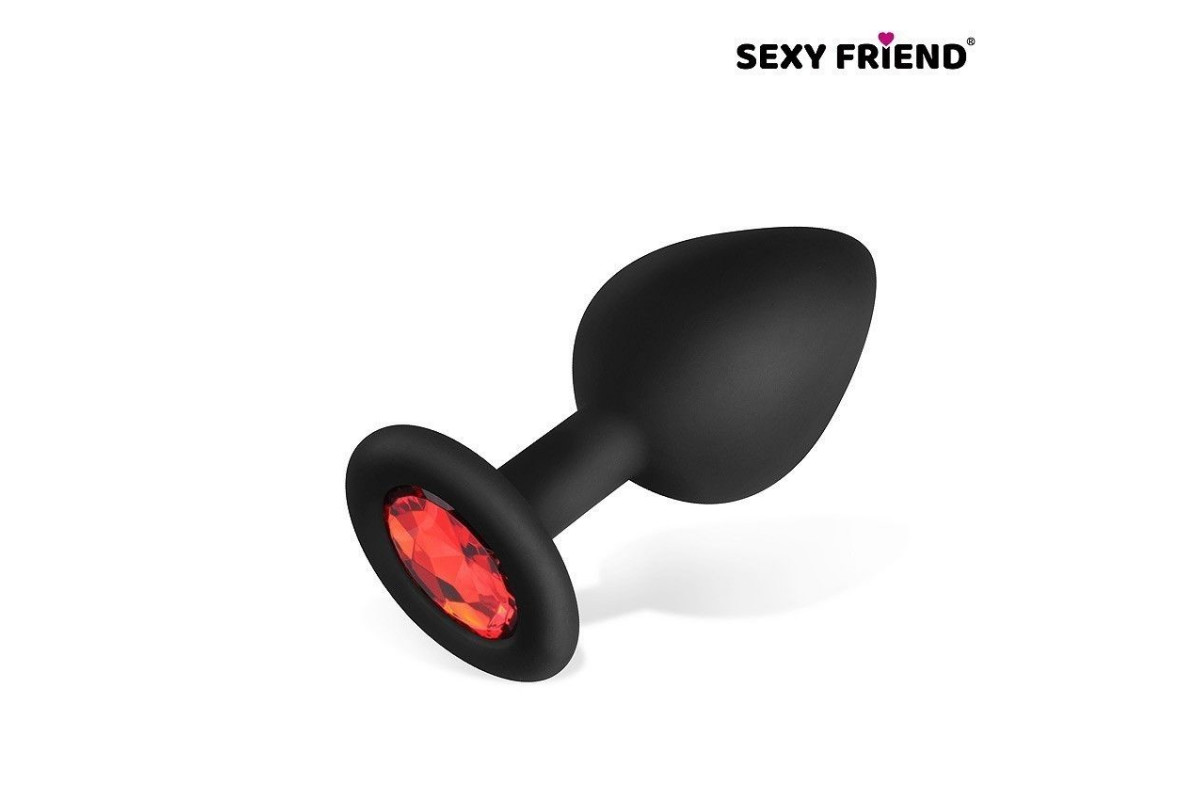 Черная силиконовая анальная втулка с красным кристаллом - 8 см.