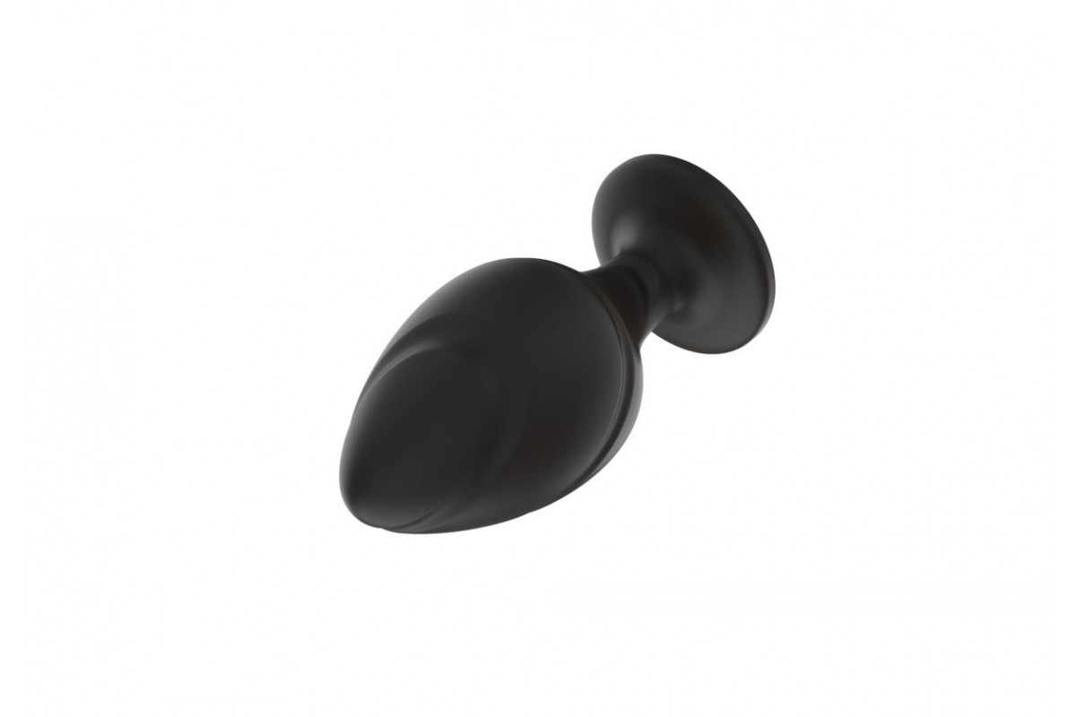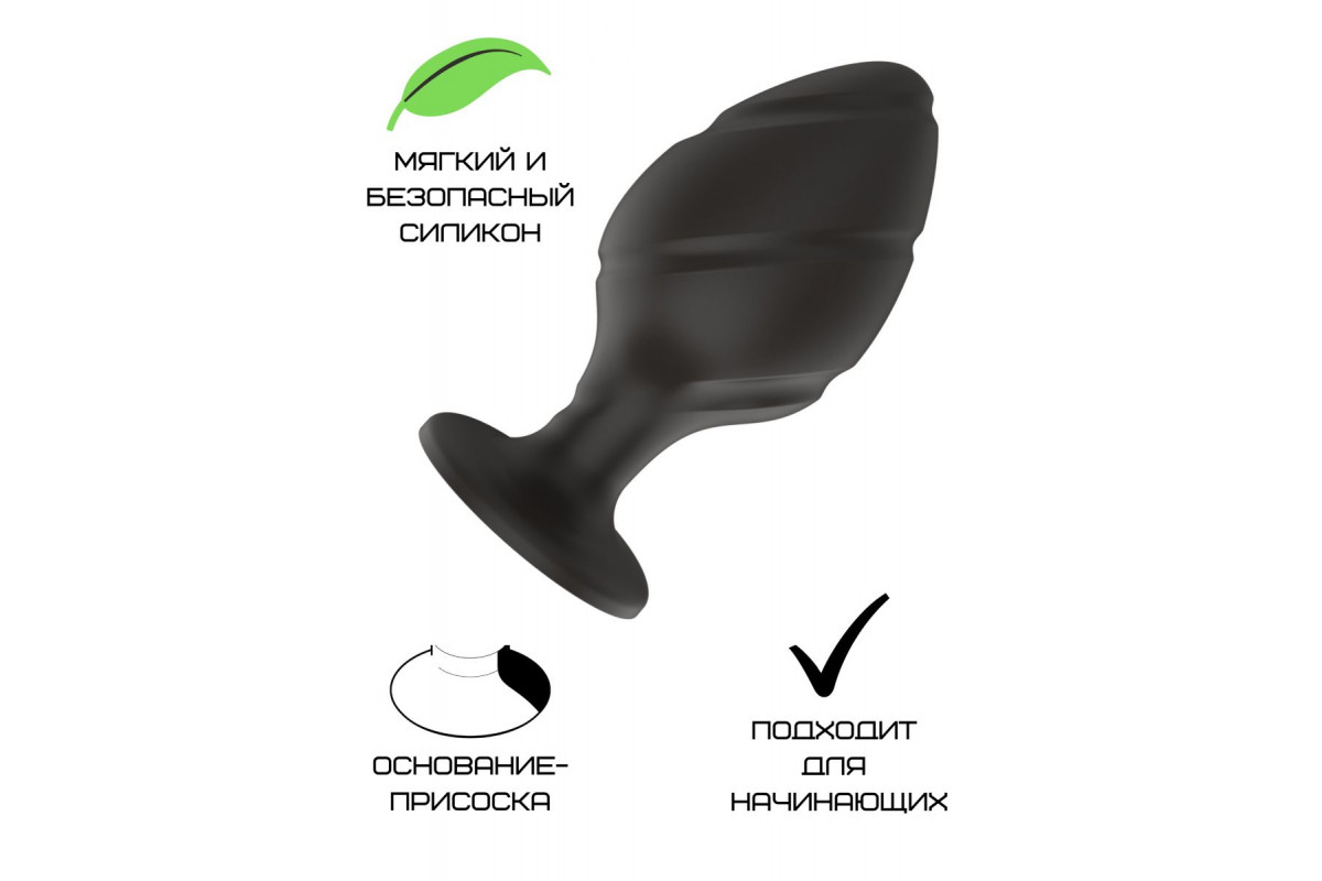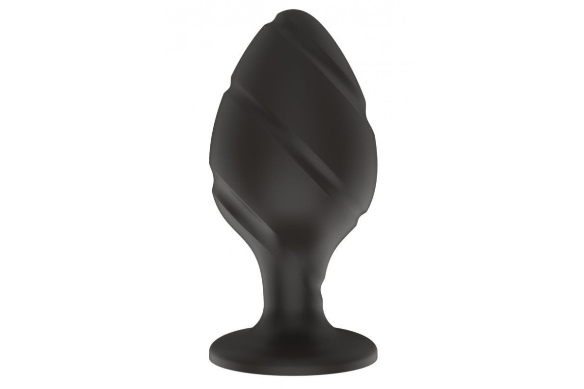 Черная средняя силиконовая анальная пробка с ложбинками по диагонали