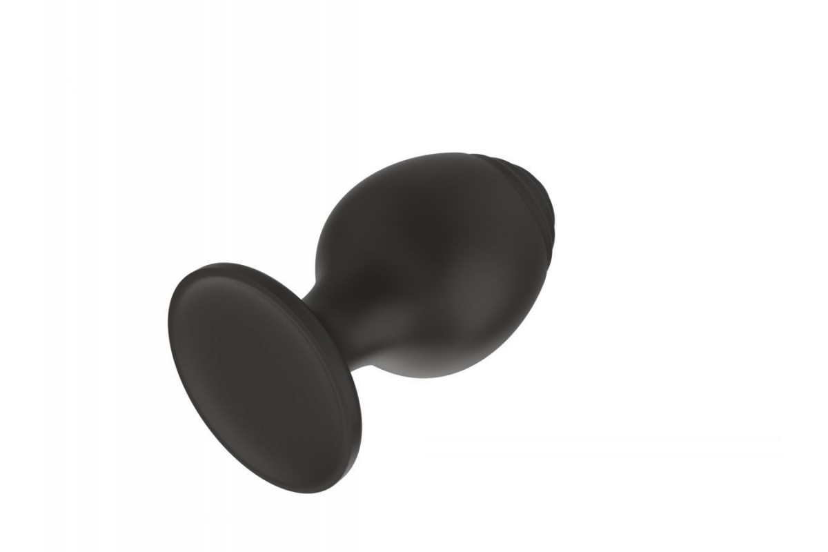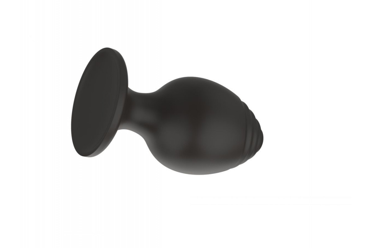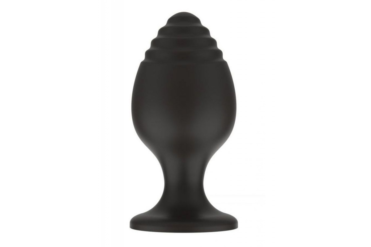 Черная средняя силиконовая анальная пробка с ребрышками на кончике