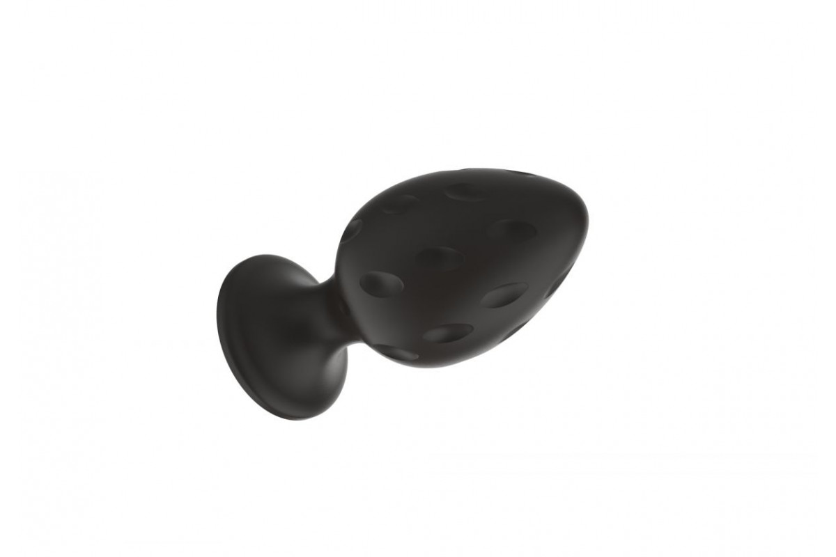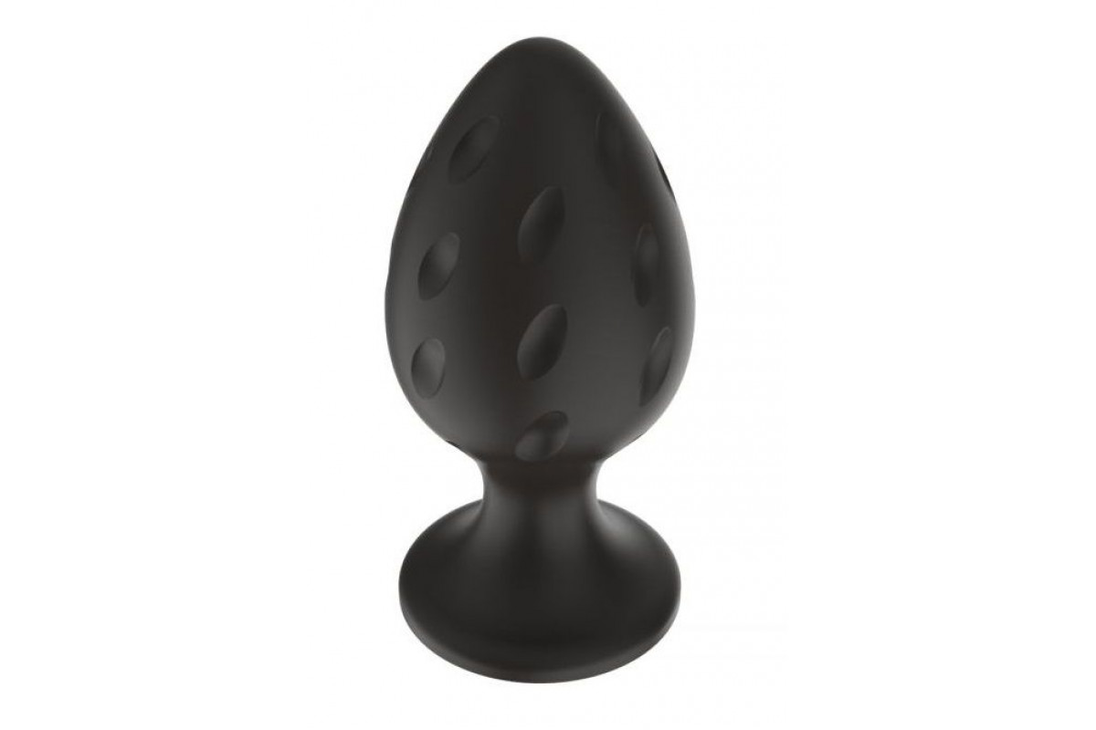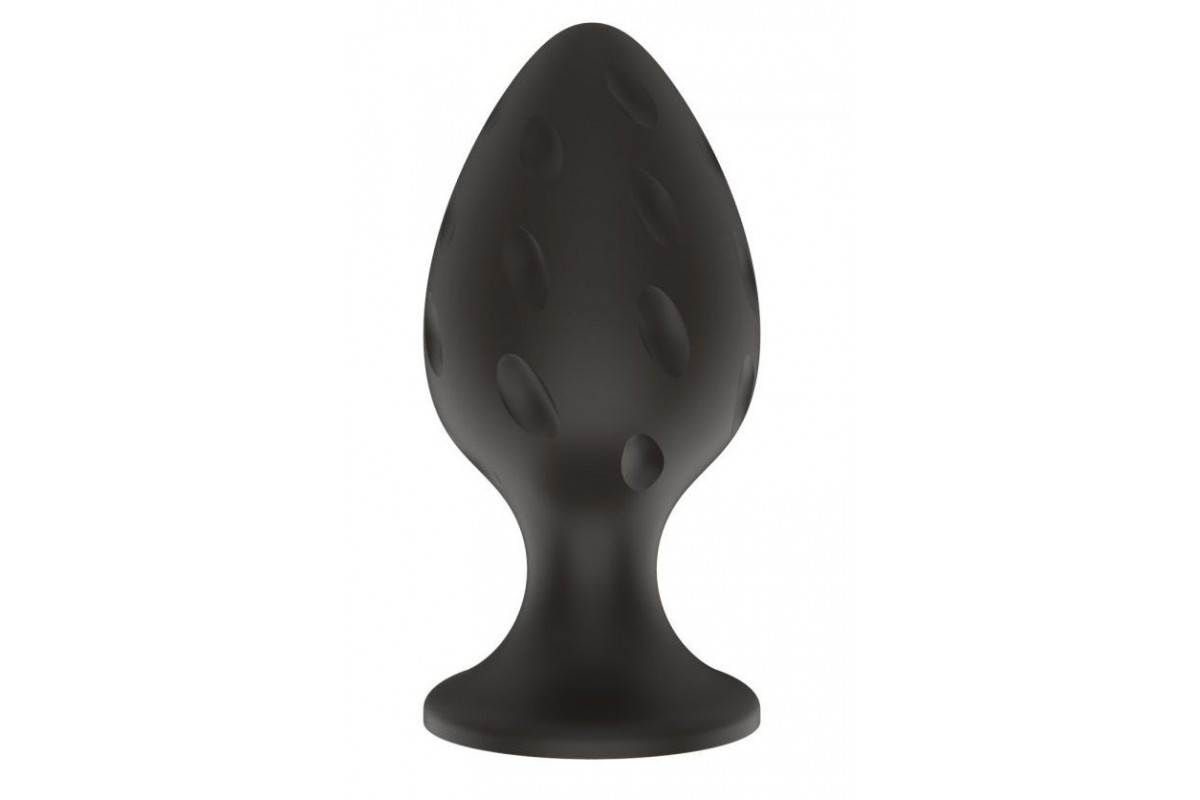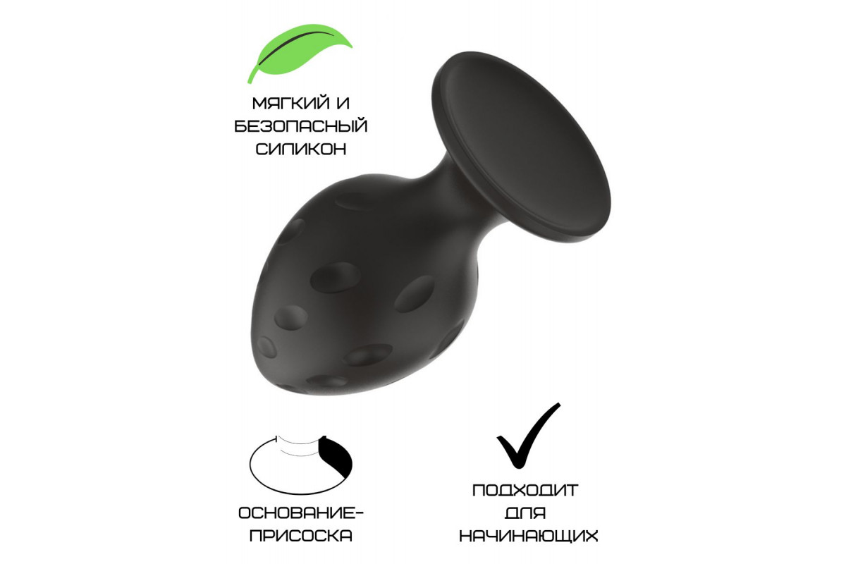 Черная средняя силиконовая анальная пробка с рельефом в виде углублений