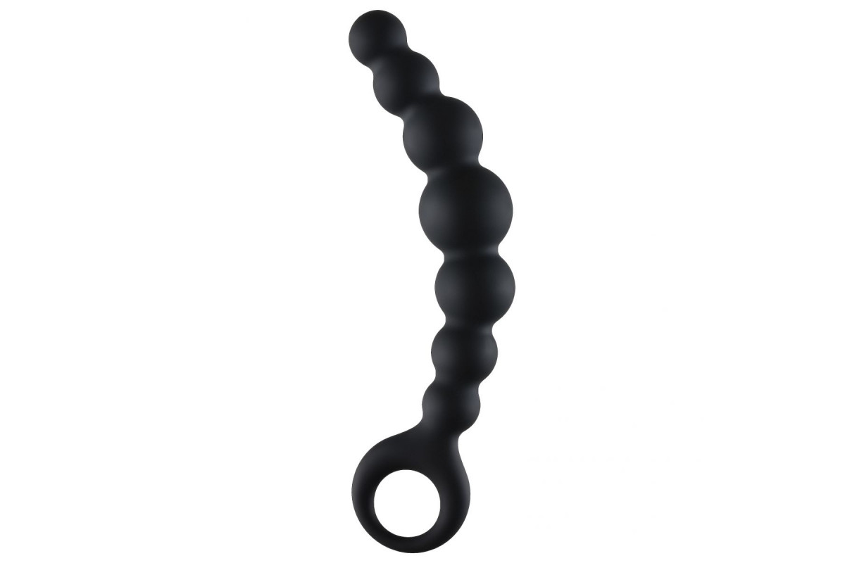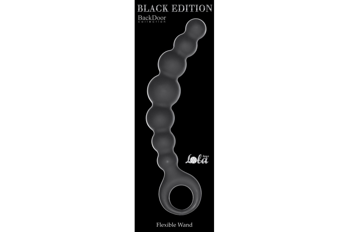 Чёрная упругая анальная цепочка Flexible Wand - 18 см.