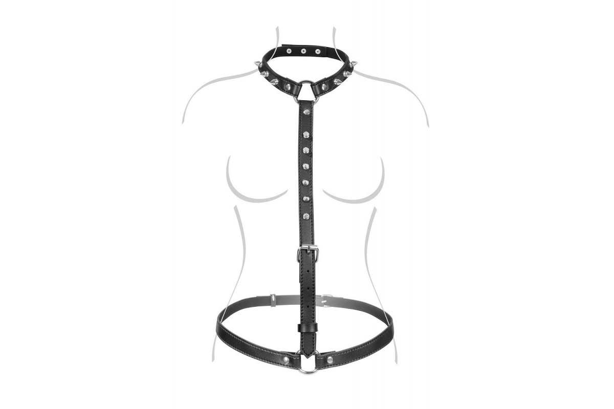 Черная упряжь на тело с шипами на ошейнике – добавьте остроты в ваши интимные игры