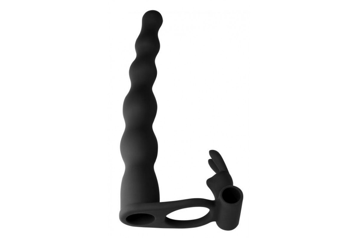 Черная вибронасадка для двойного проникновения Naughty Bunny - 17 см.