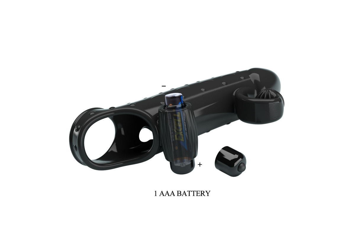 Черная вибронасадка на пенис с подхватом мошонки – 20 см