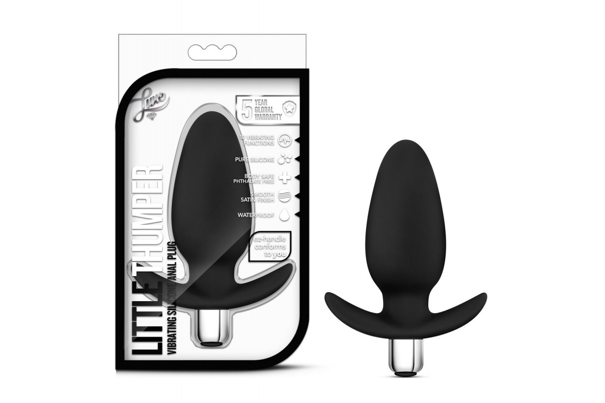 Чёрная вибропробка Luxe Little Thumper. Гладкая и приятная на ощупь. 10 функций вибрации. Рабочая длина - 8,9 см.