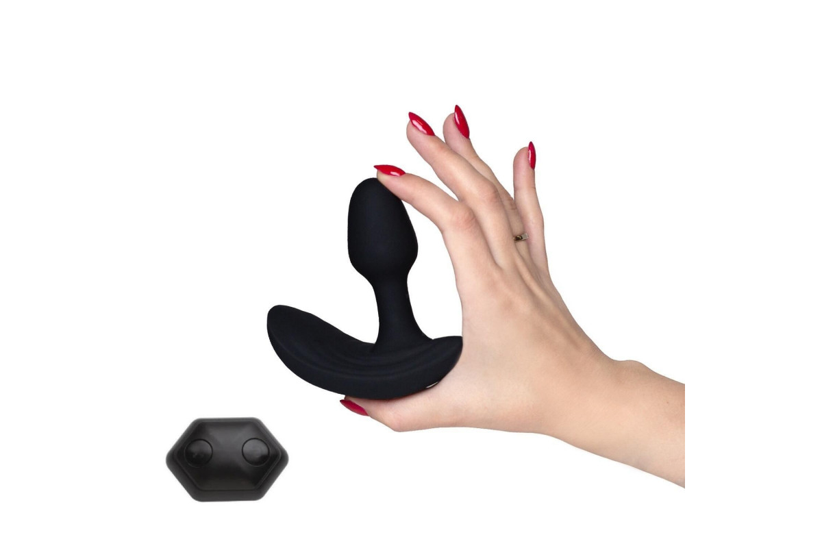 Черная вибропробка с функцией расширения и пультом ДУ Himeros