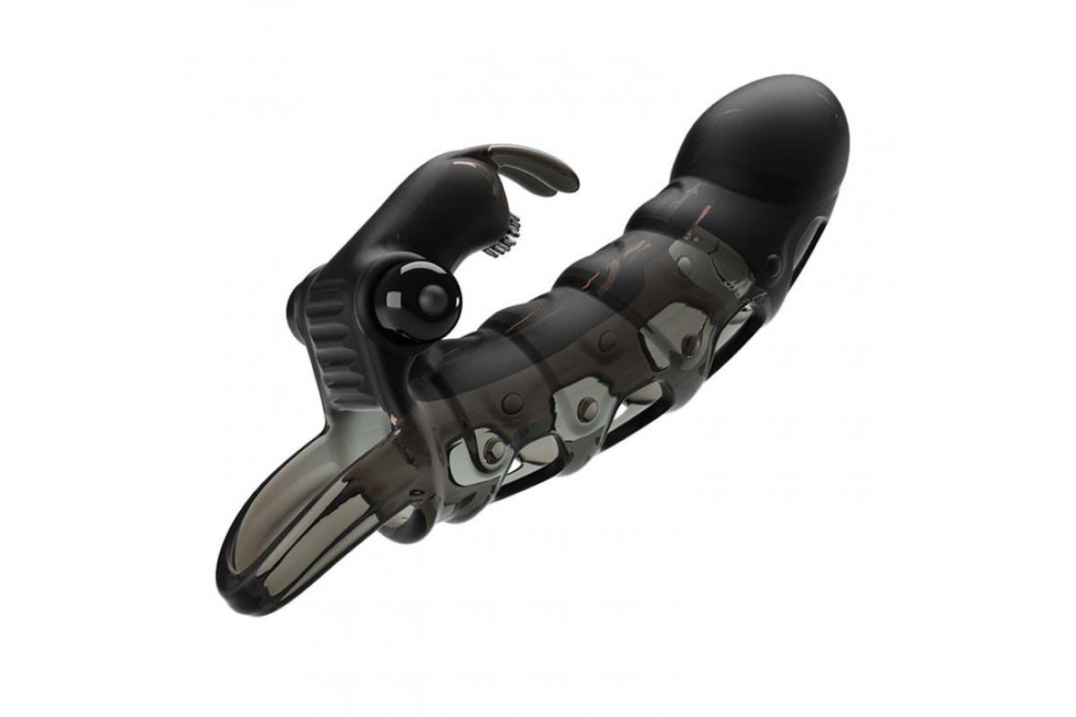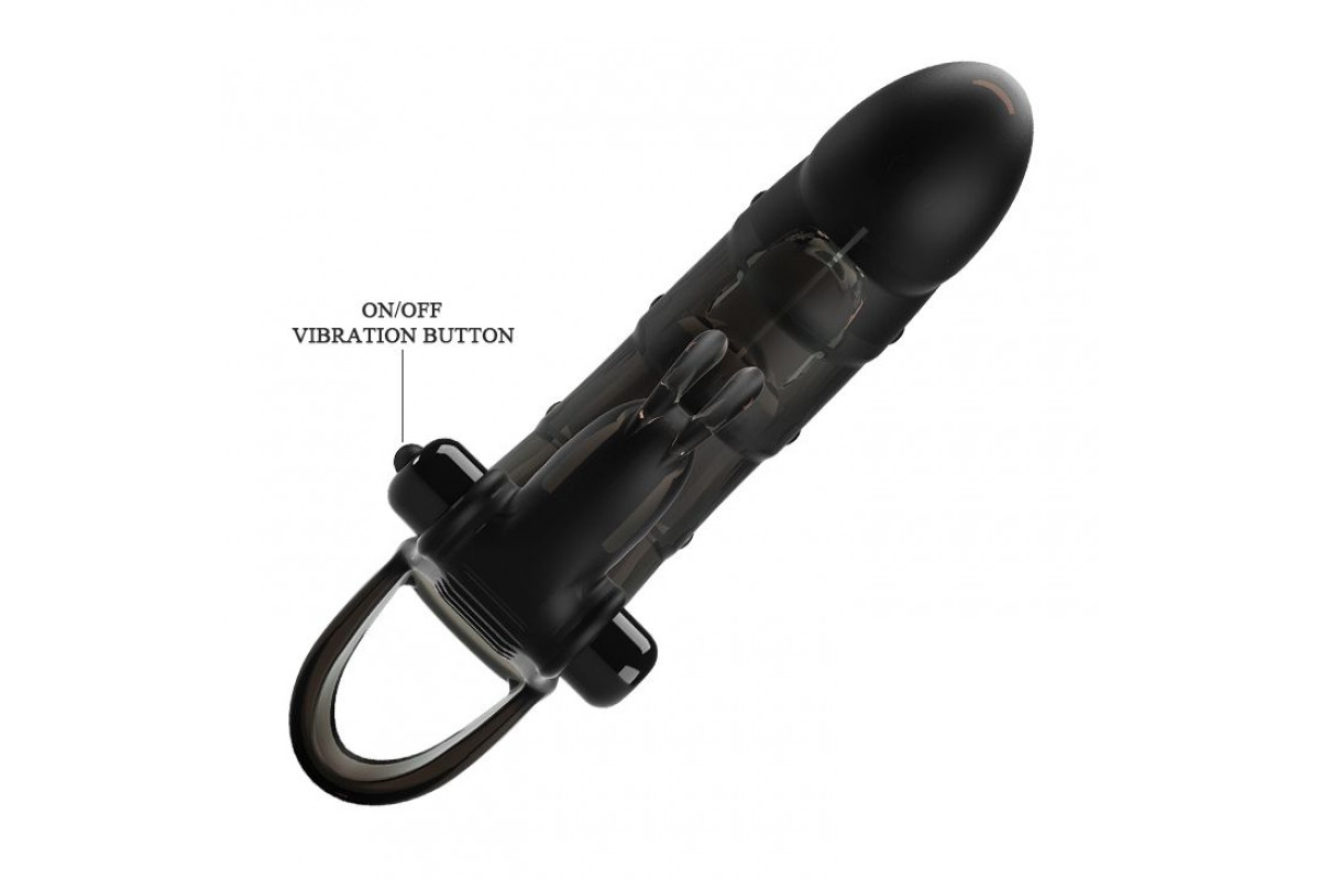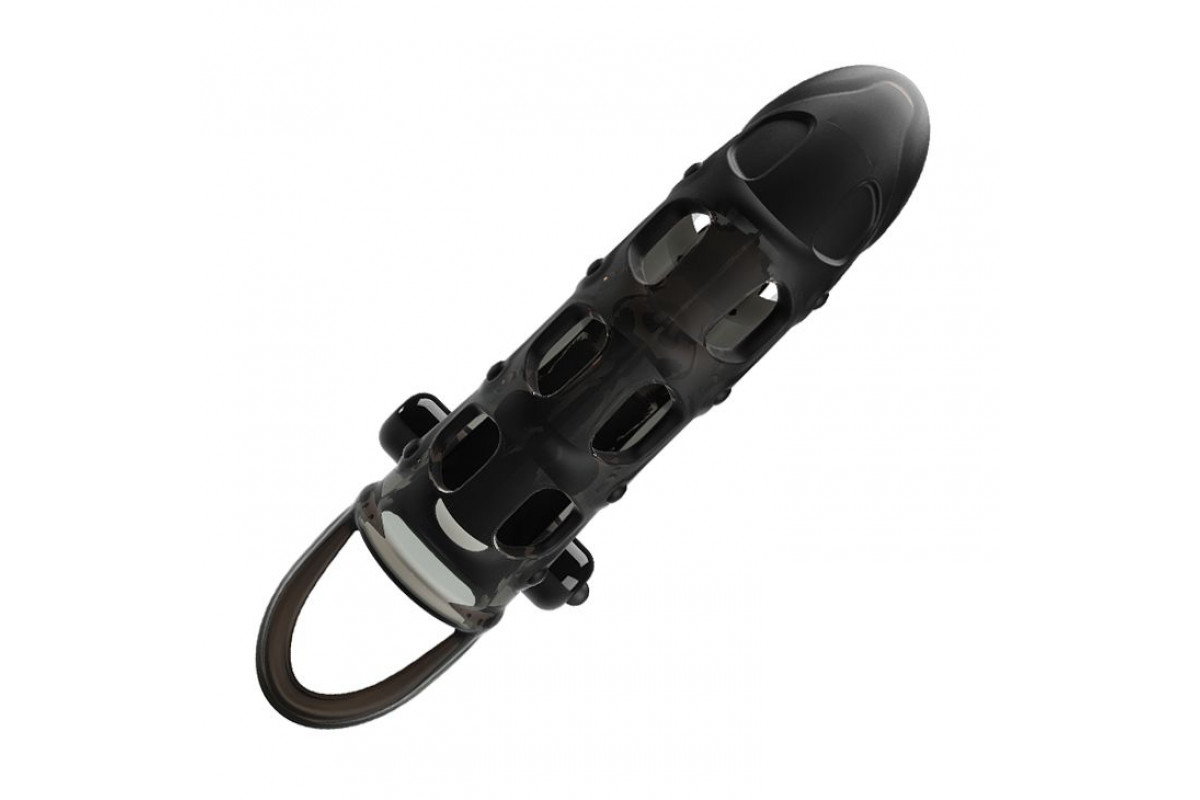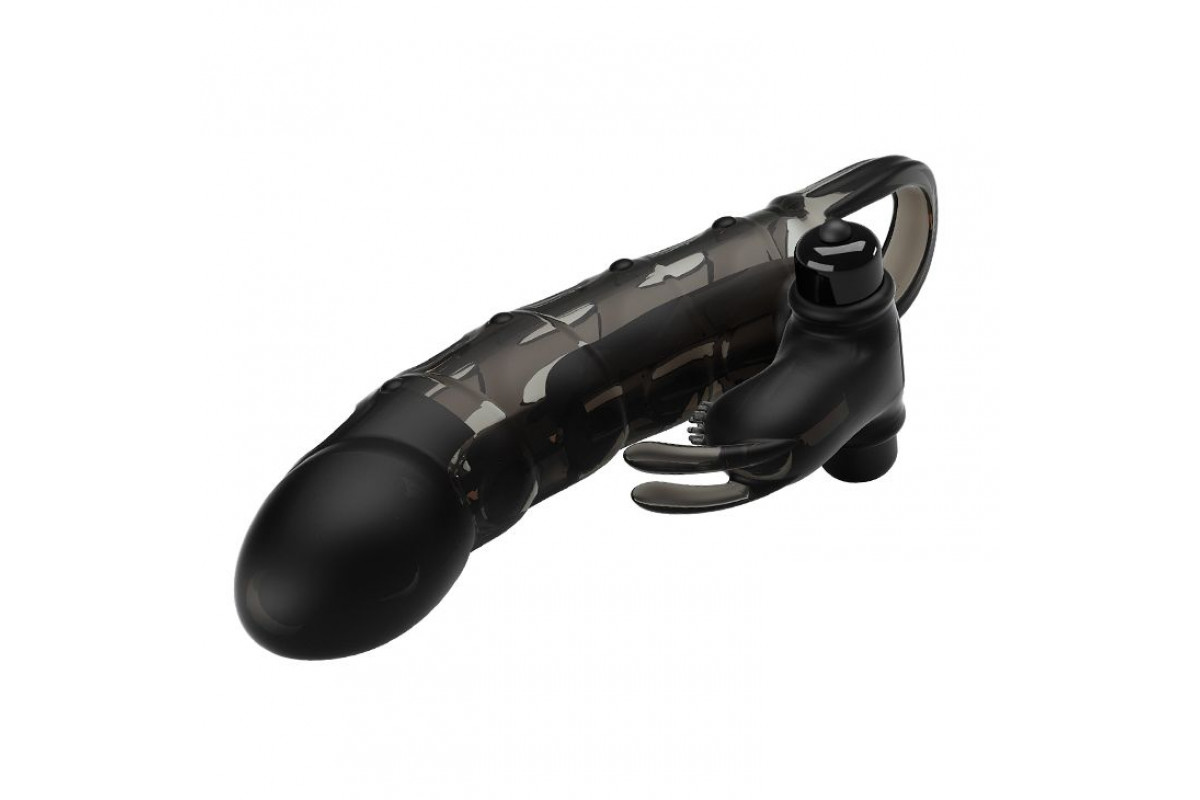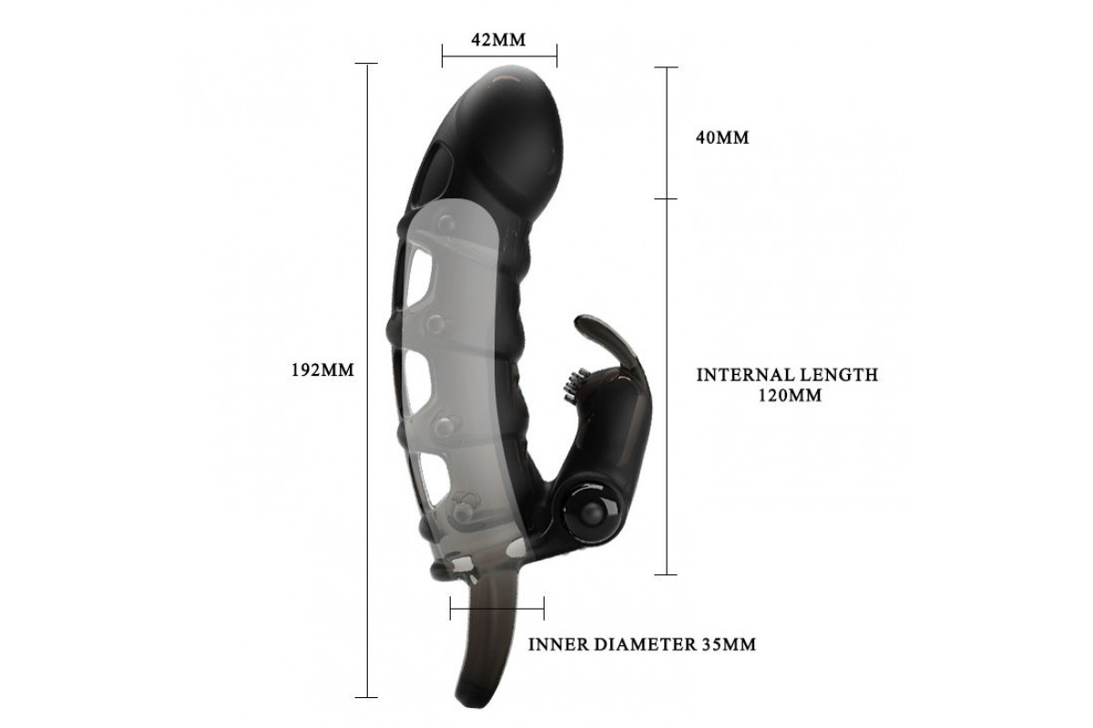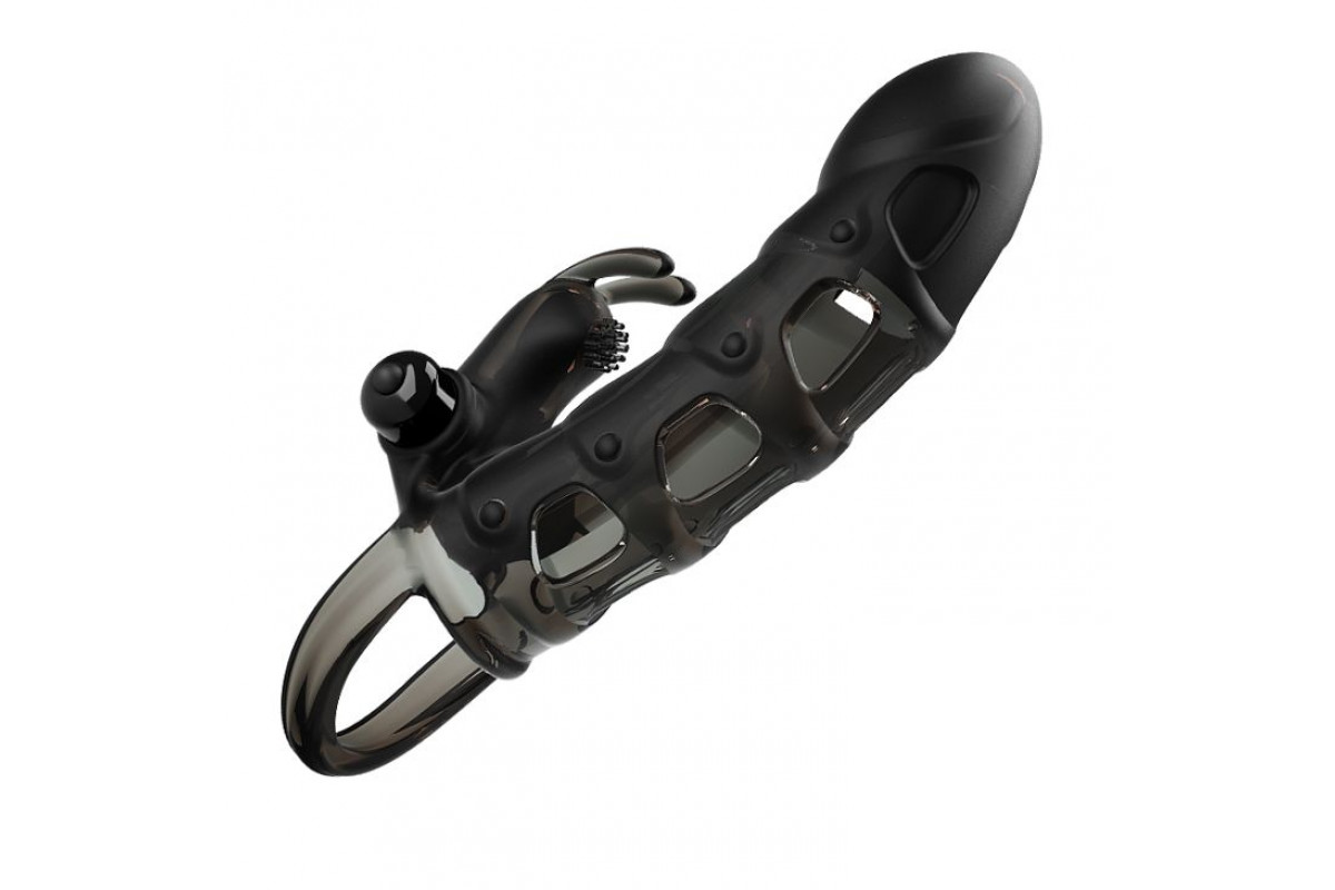 Черная закрытая насадка с подхватом мошонки и стимулятором клитора – 19,2 см