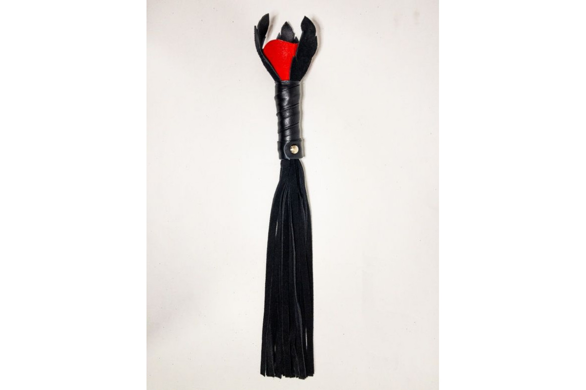 Черная замшевая плеть с красной лаковой розой в рукояти – 40 см