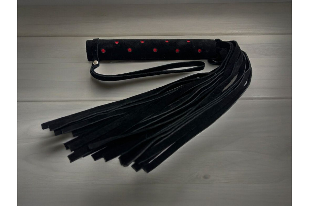 Черная замшевая плеть с красными точками Red dot Princess — 43 см