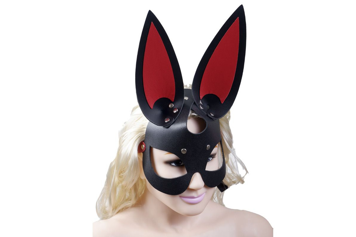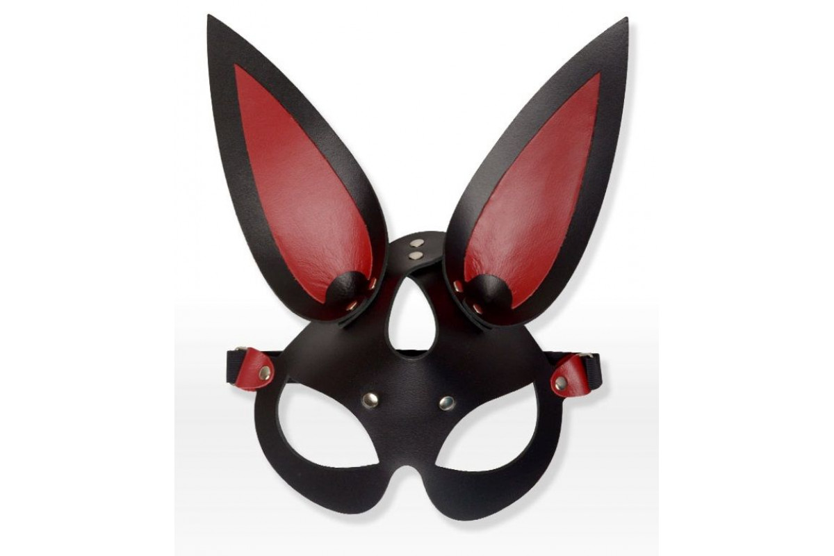 Черно-красная кожаная маска с длинными ушками