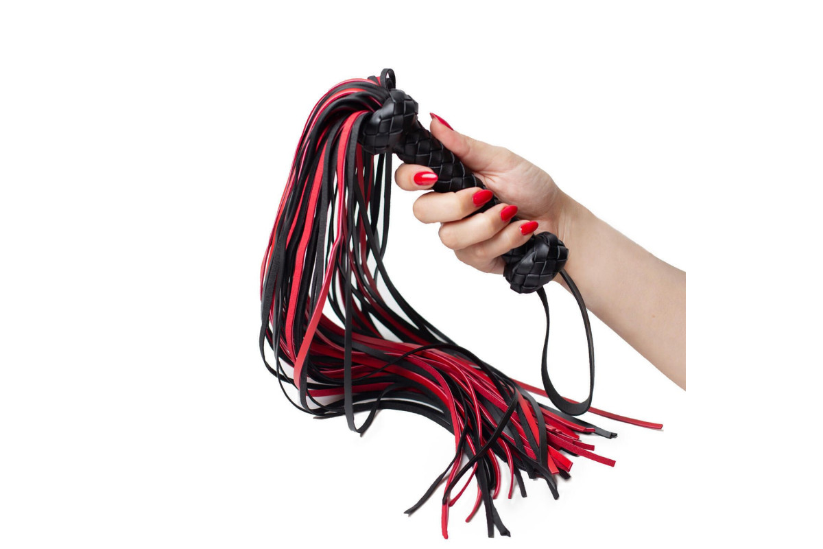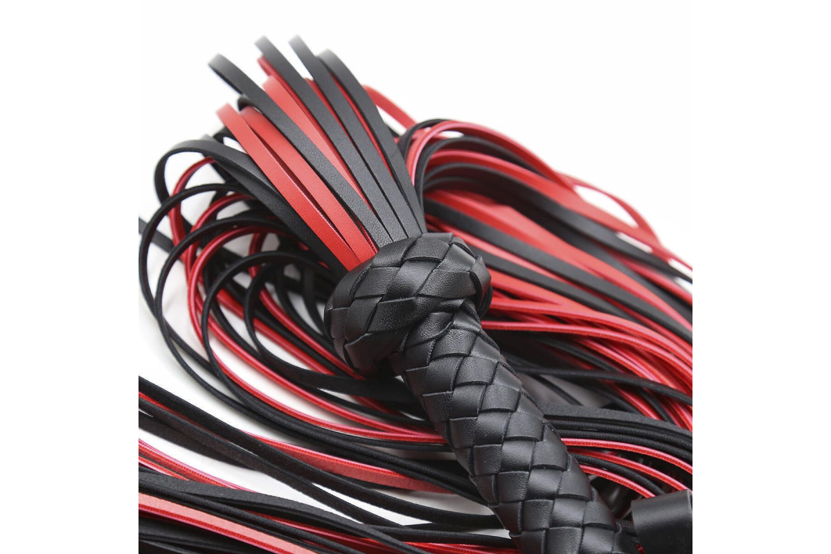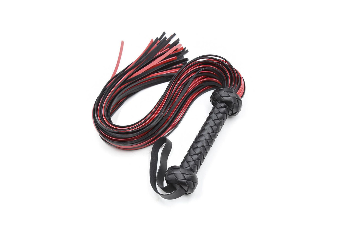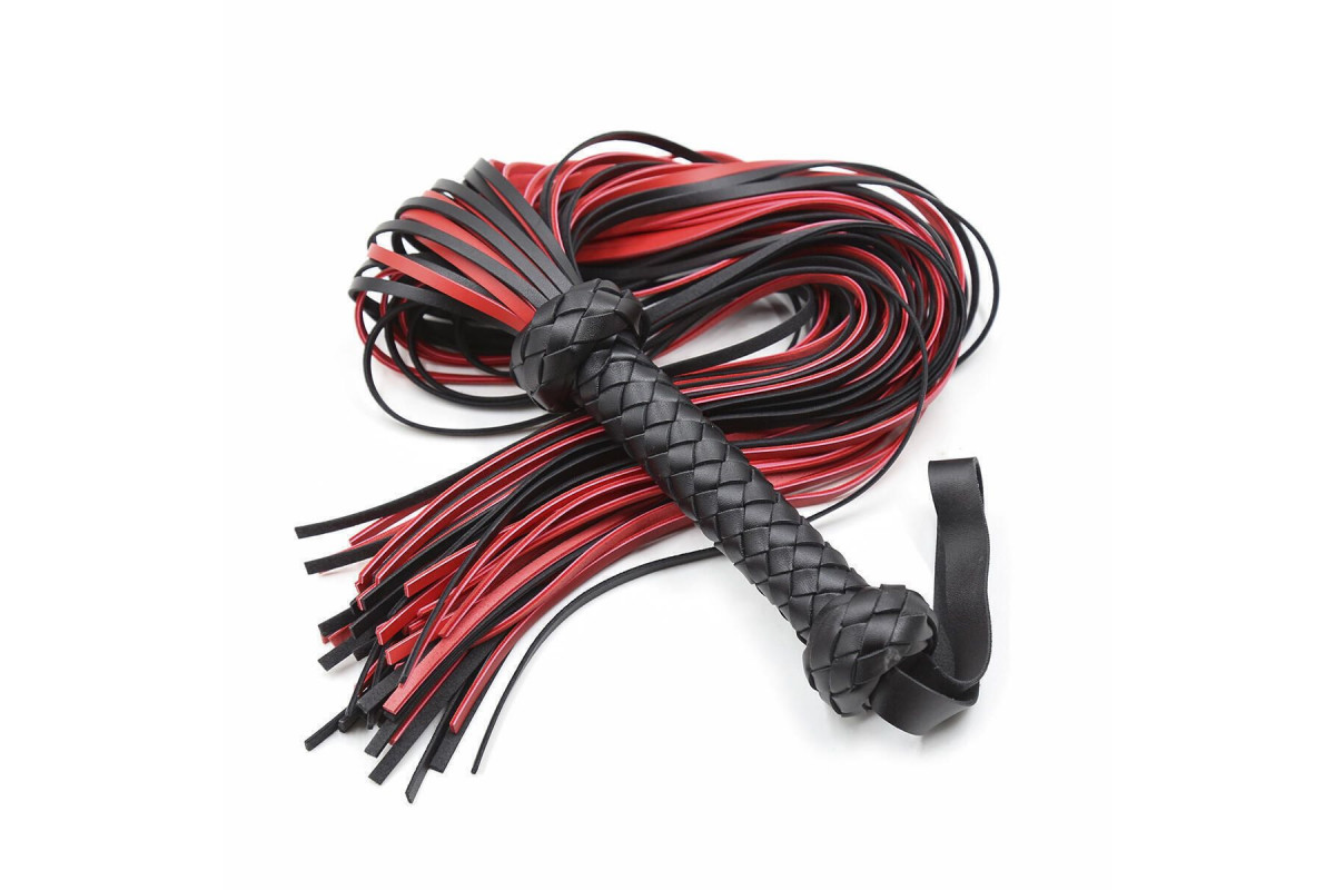 Черно-красная плеть из искусственной кожи – идеальный аксессуар для взрослых
