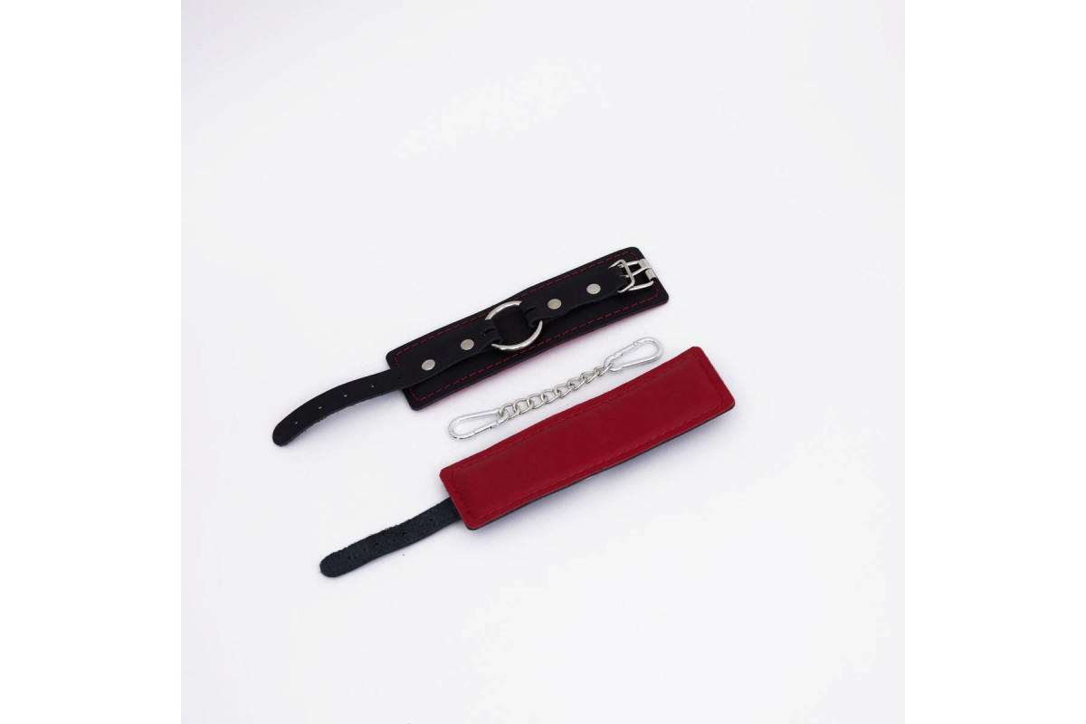 Черно-красные кожаные наручники — стильное и надежное украшение для взрослых игр
