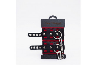 В комплект входит прочная соединительная цепочка с двумя надежными карабинами , которые обеспечивают стабильность и контроль. Общая длина изделия составляет 28 см , а каждая манжета имеет размеры 18,5 х 7 см , что делает их универсальными и подходящими для любого типа использования.