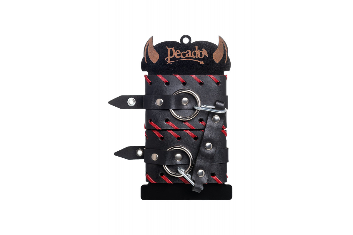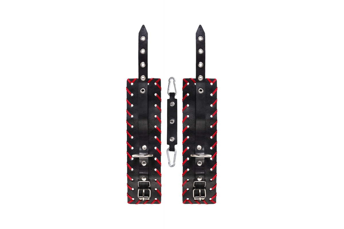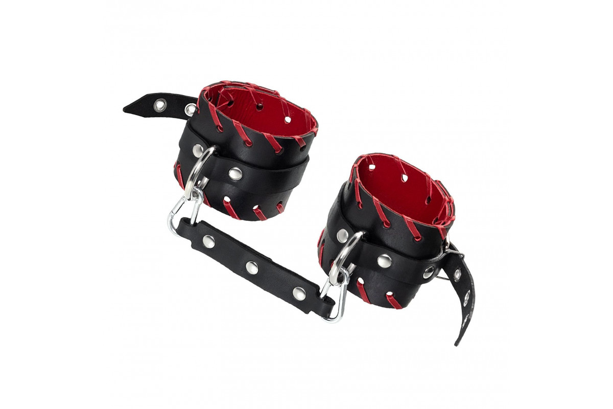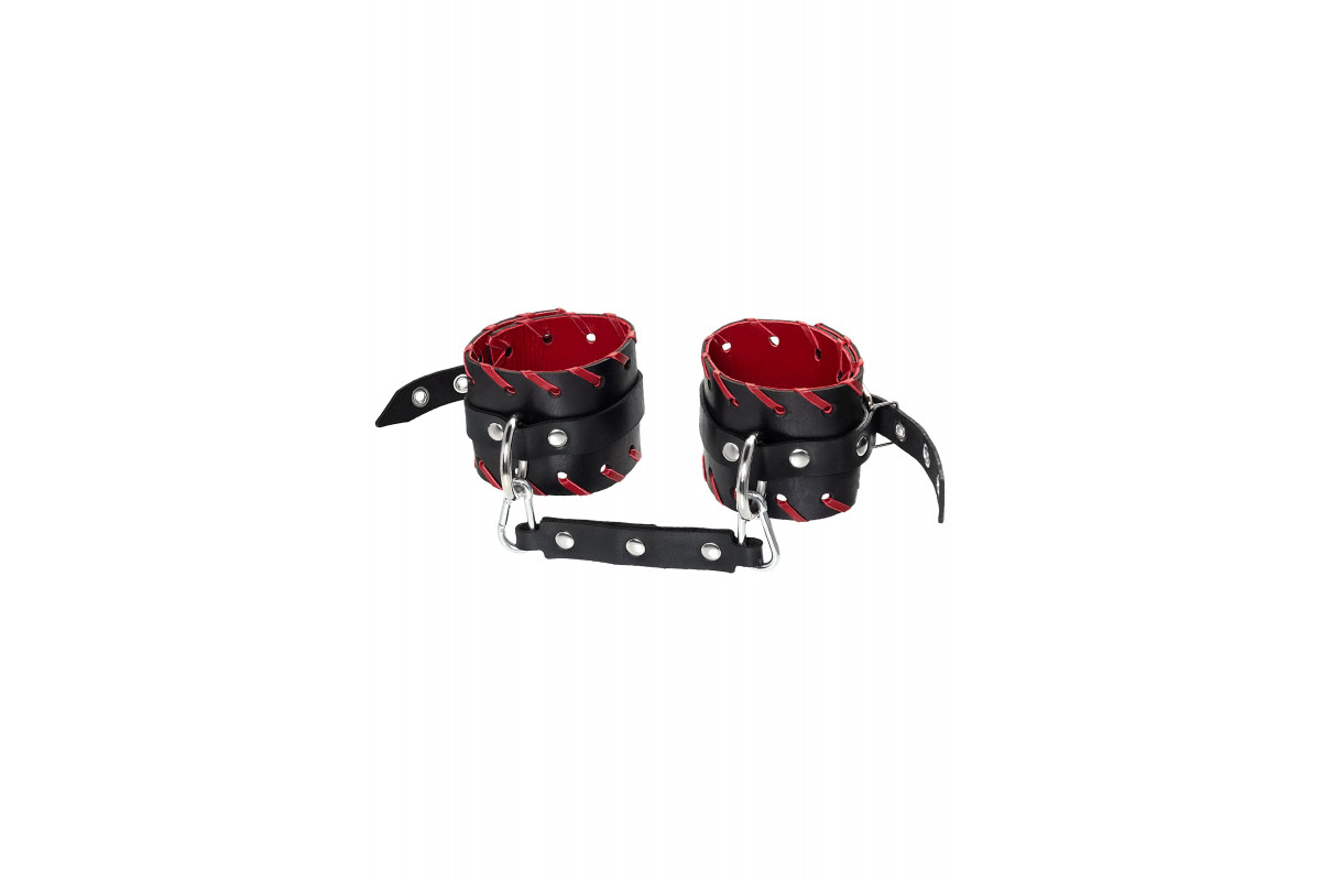 Изготовленные из прочной и мягкой натуральной кожи, эти оковы обеспечивают надежную фиксацию и комфорт во время использования. Их насыщенные черно-красные оттенки придают изделию особый шарм и привлекательность, делая его не только функциональным, но и эстетичным аксессуаром.