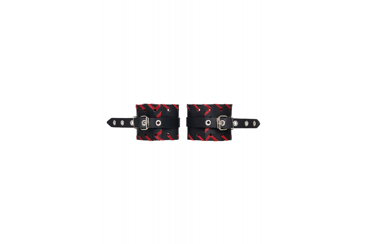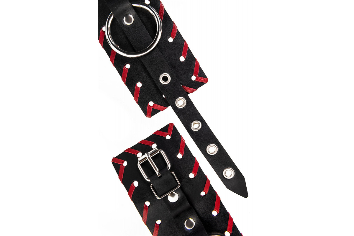 Черно-красные оковы из натуральной кожи — идеальный аксессуар для BDSM-игр