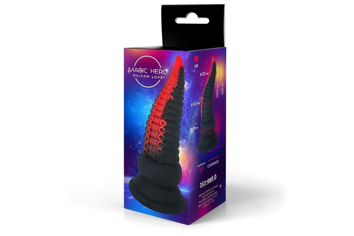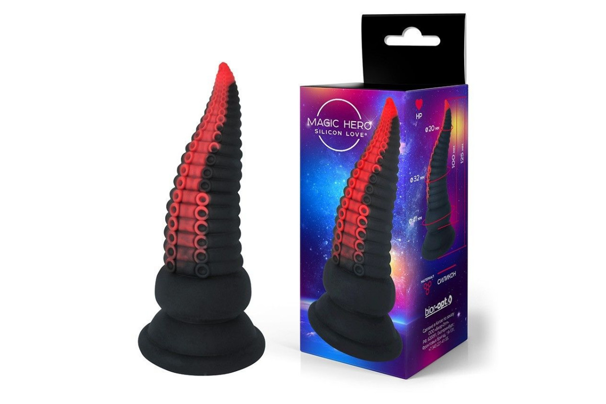 Черно-красный фантазийный анальный стимулятор-щупальце - 12,5 см.