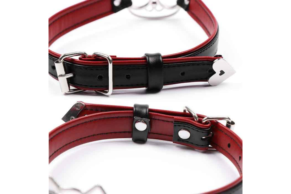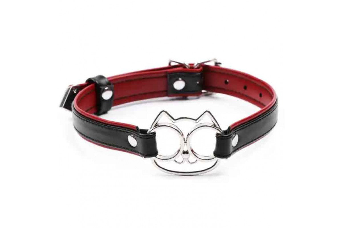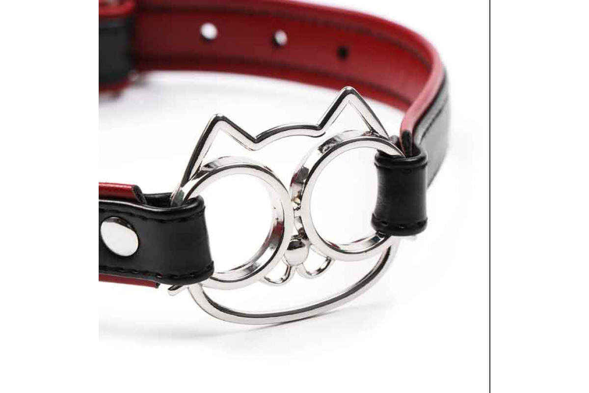 Черно-красный ошейник с мордочкой кошечки — стильный аксессуар для взрослых