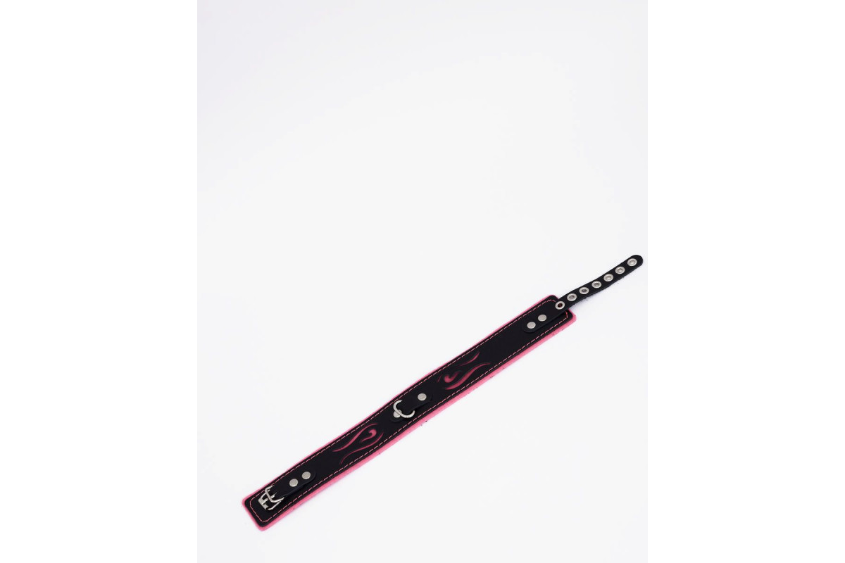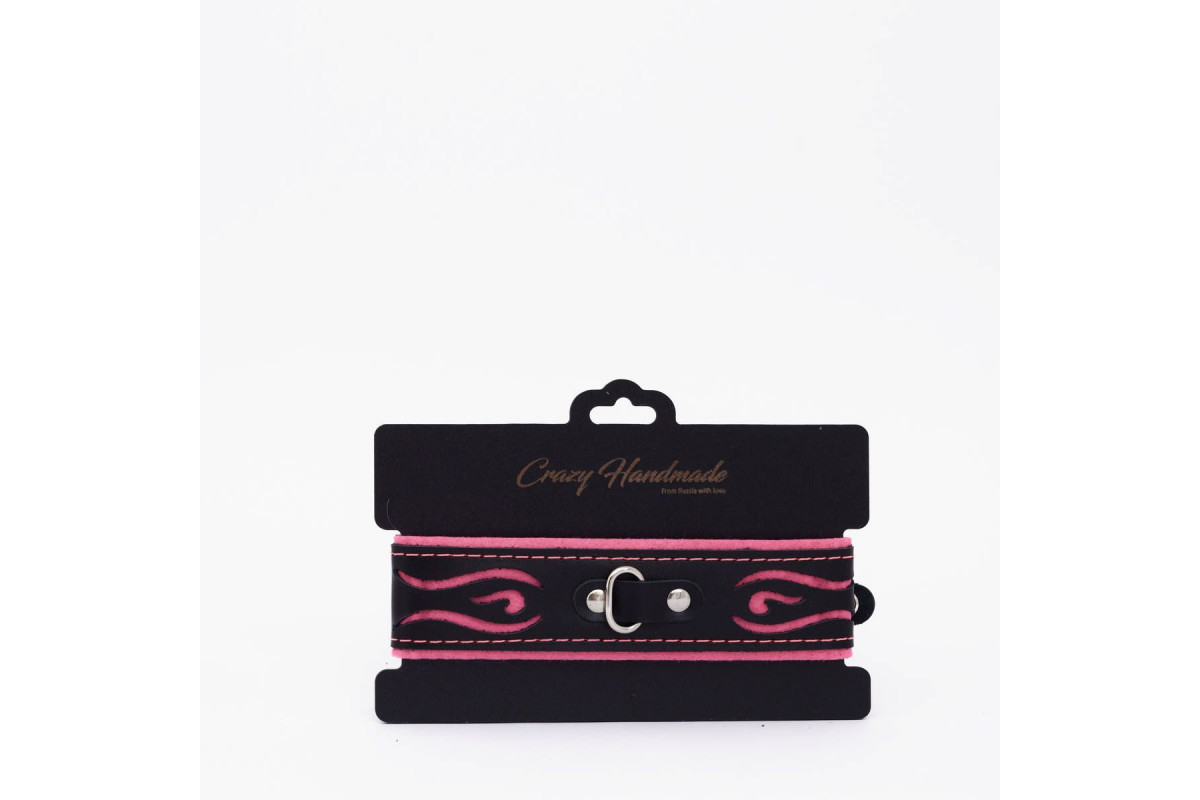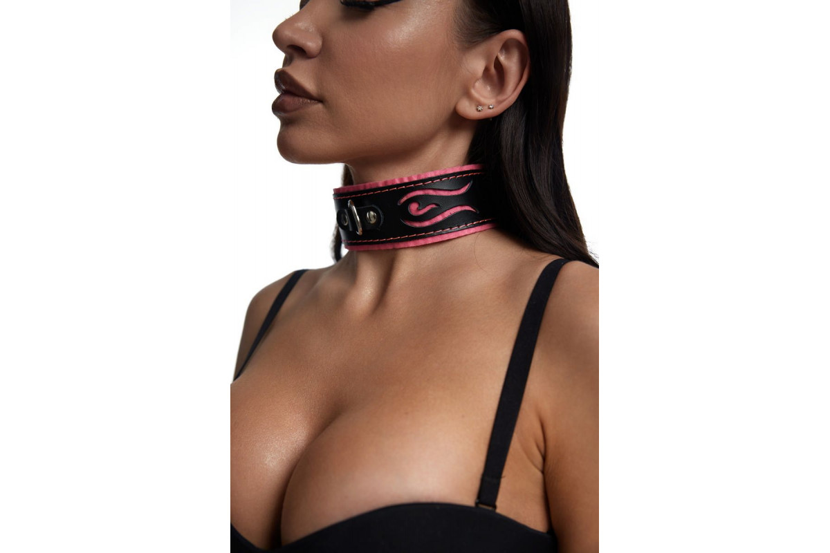 Черно-розовый кожаный ошейник с розовой строчкой — стильное и изысканное украшение для взрослых