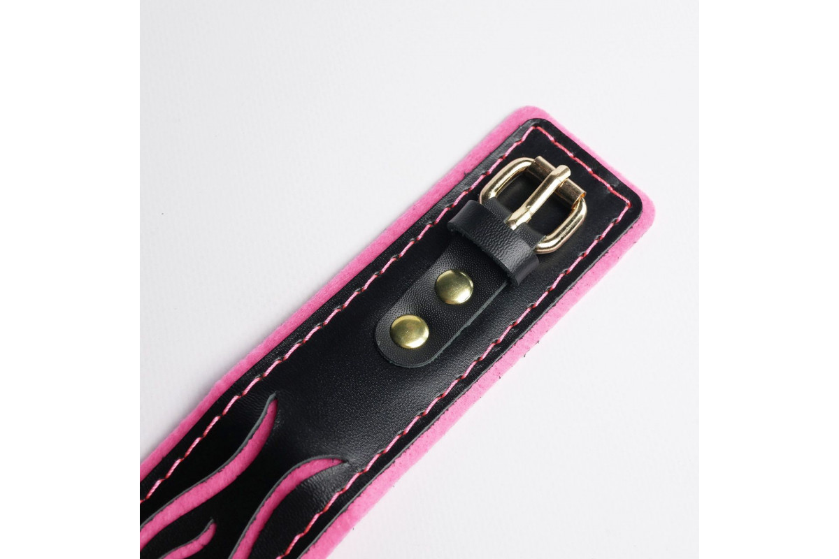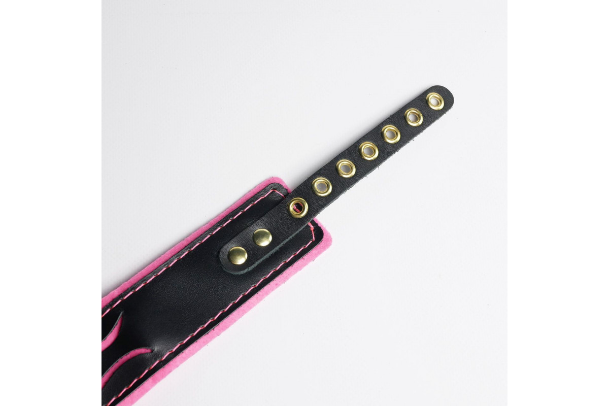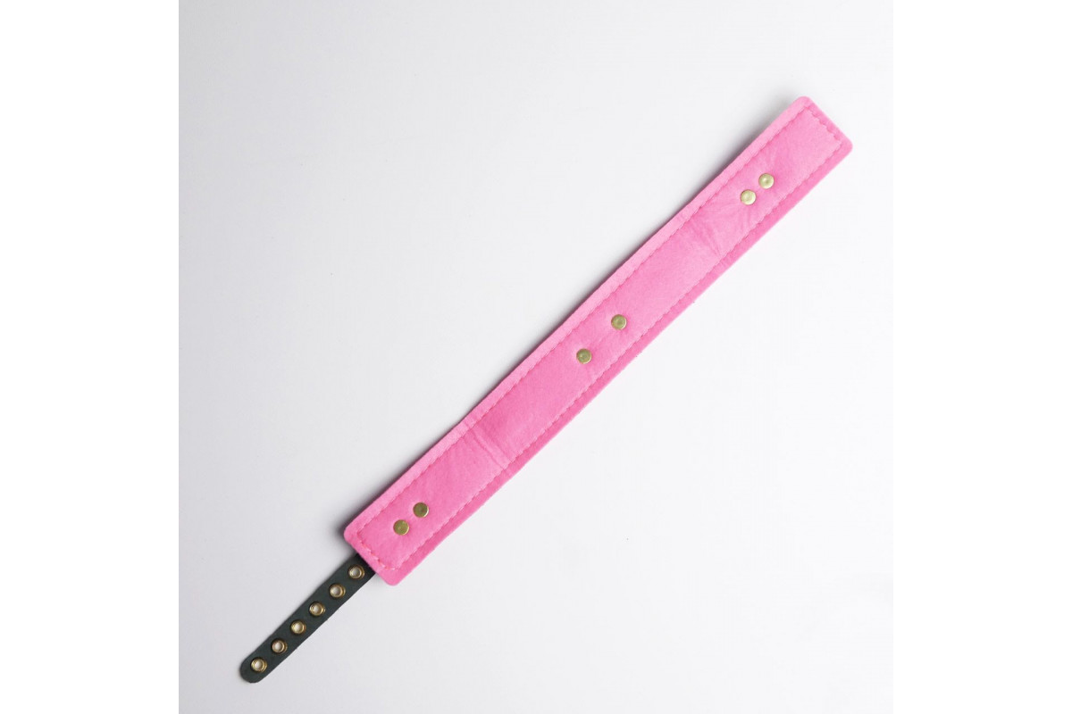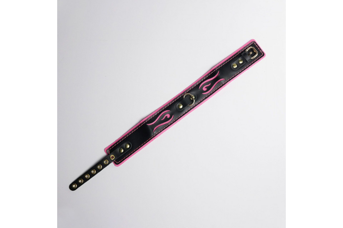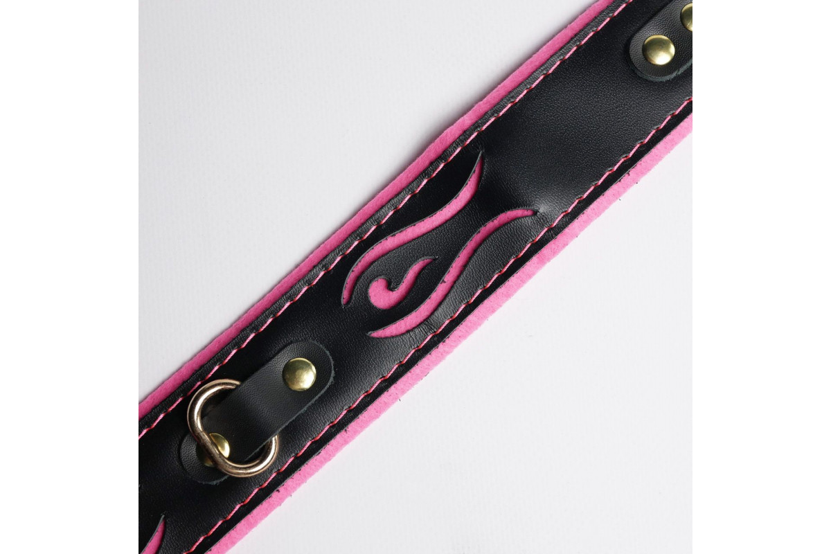 Этот ошейник сочетает в себе контрастные цвета — глубокий черный и нежный розовый, создавая привлекательный и соблазнительный образ. Золотистая фурнитура добавляет изделию нотки роскоши и изысканности, делая его не только функциональным аксессуаром, но и стильным украшением.