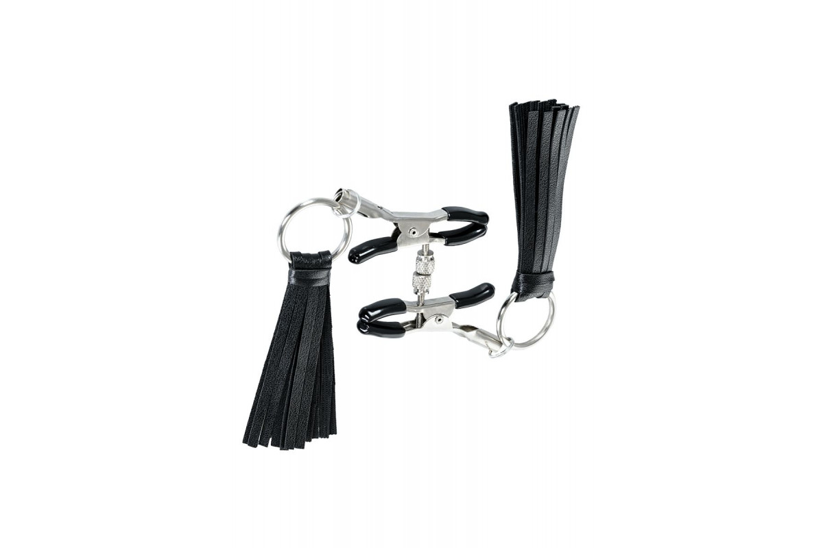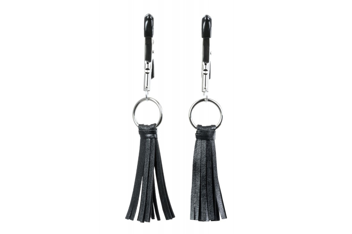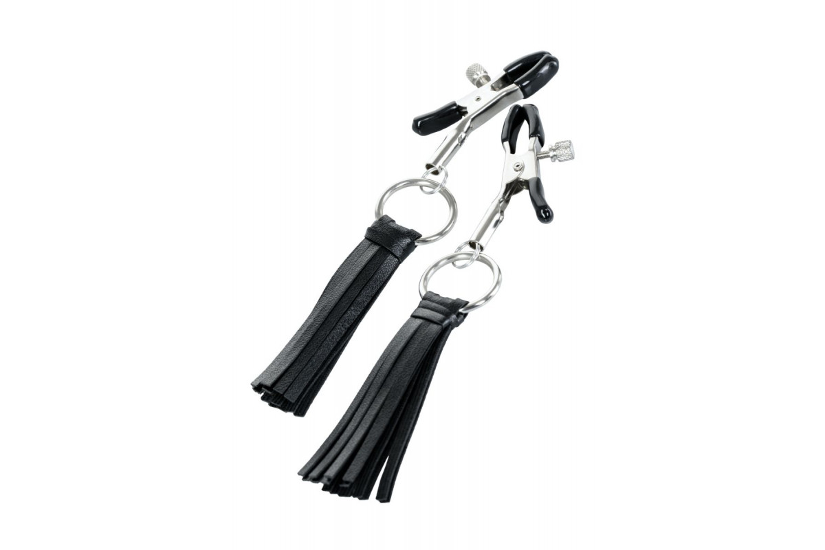 Зажимы классической формы украшены кисточками из PU- кожи. Они не только стимулируют соски, но и придают игривый вид. Сдавливание регулируется болтиком и может быть усилено или уменьшено во время интимной игры. Покрытие на концах зажимов защищает нежную кожу.