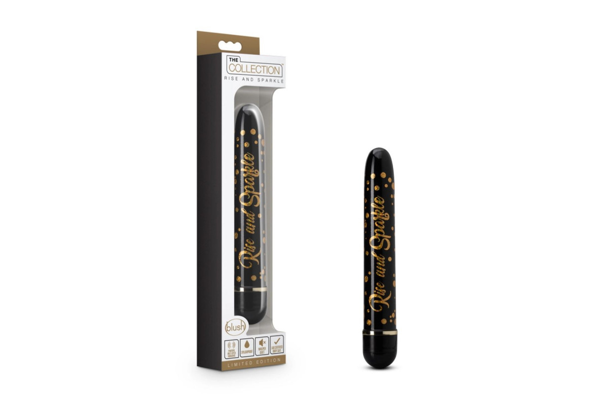 Черно-золотистый классический вибратор Rise and Sparkle — идеальный выбор для тех, кто ценит стиль и качество