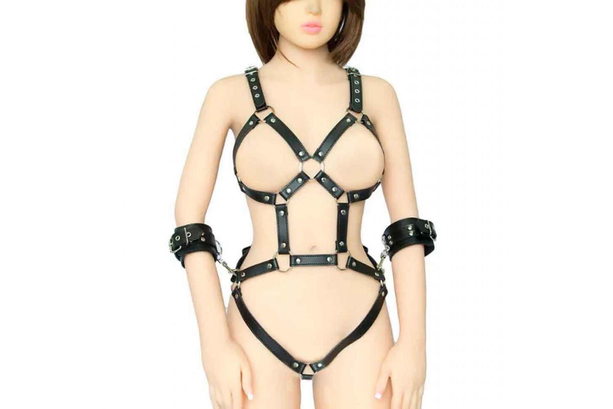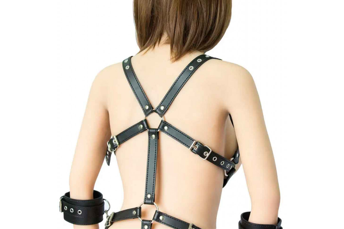 Черное боди-портупея с пристегивающимися наручниками — откройте новые границы страсти
